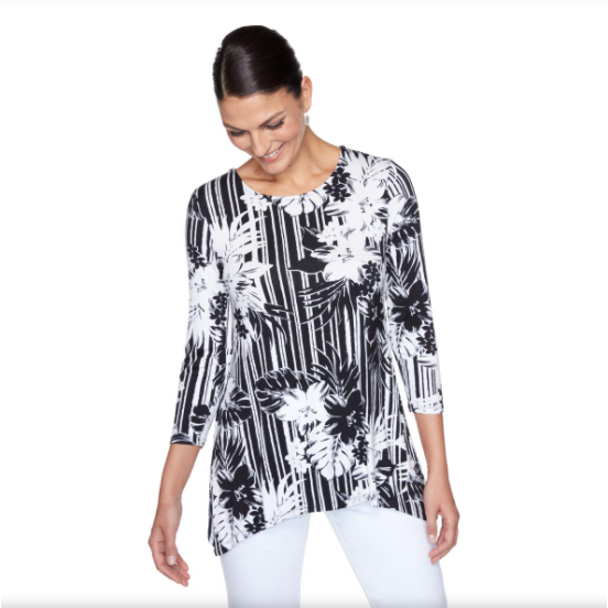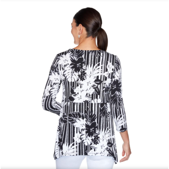 Blusa con Flores Blanco/Negro Ruby Rd X