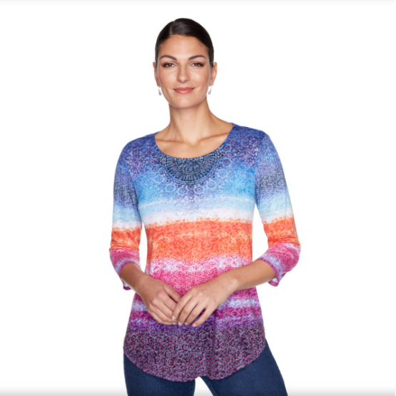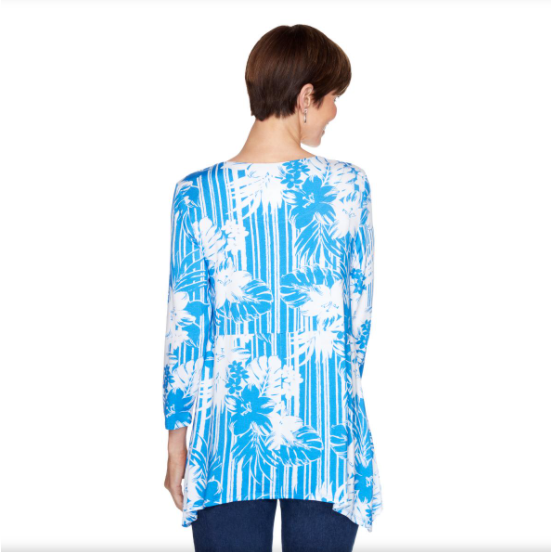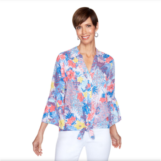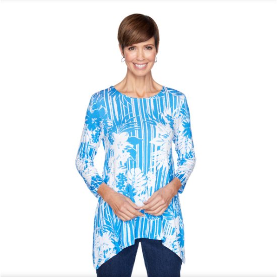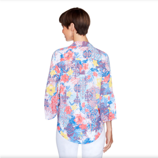 Blusa con Flores Blanco/Azul Ruby Rd X