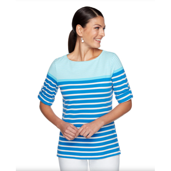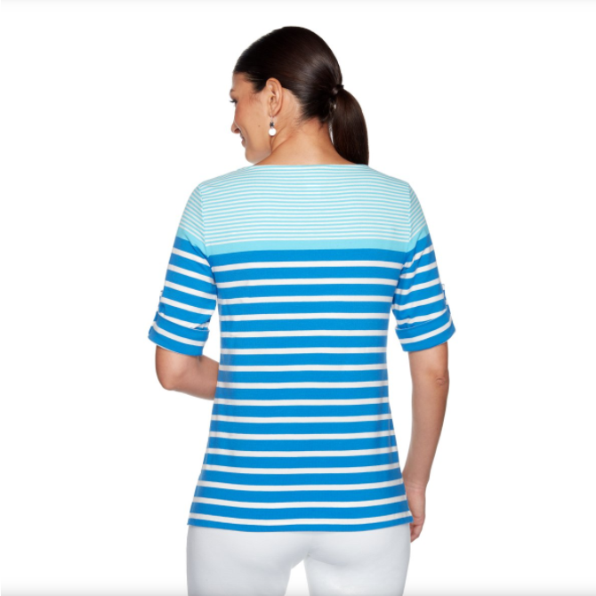 Blusa de Rayas Blancas, Azul Multicolor Ruby Rd