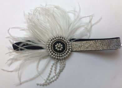 Flapper Headband, Silver, with Feather