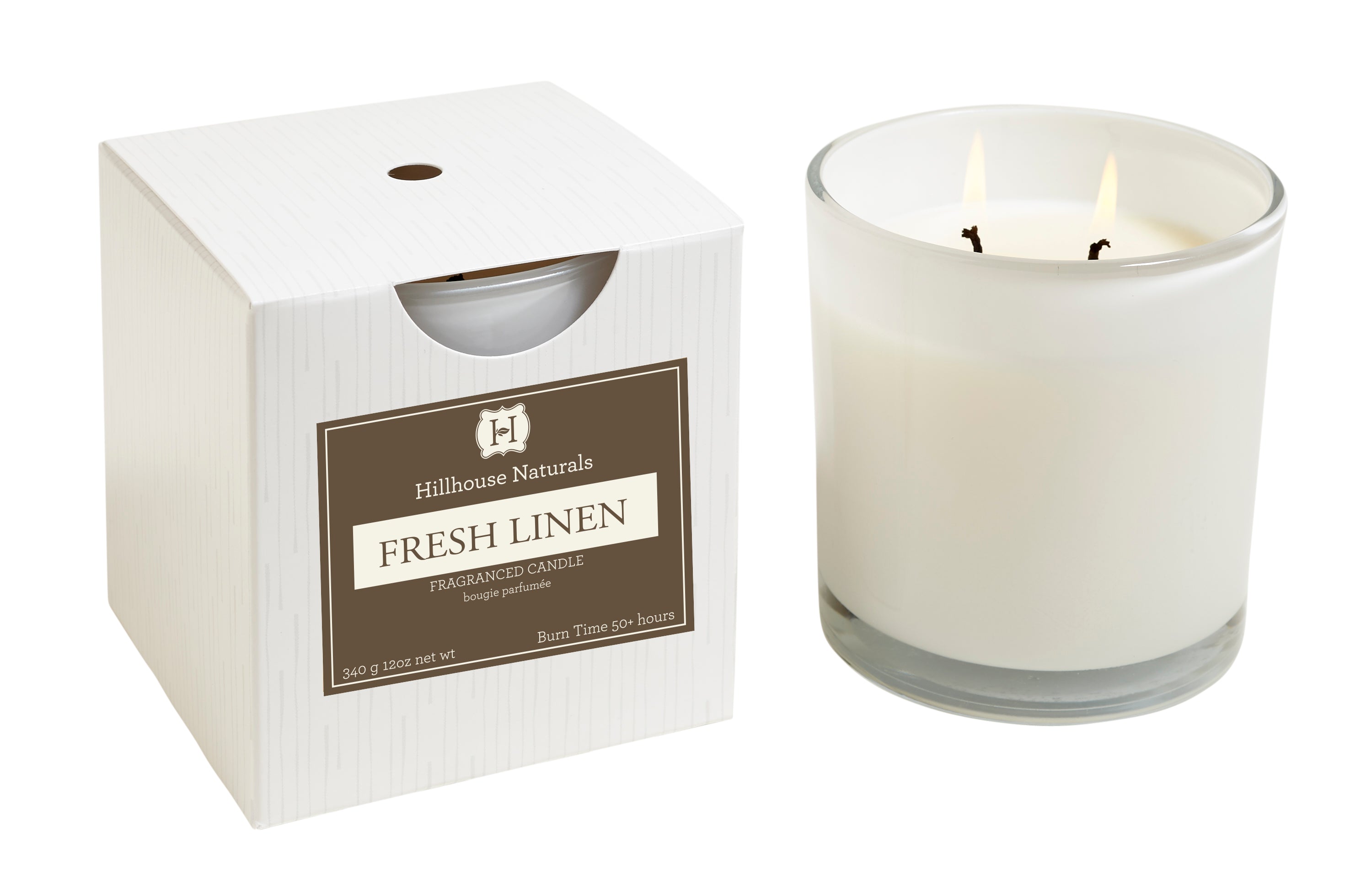 FRESH LINEN 2 WICK CANDLE IN WHITE GLASS 12oz