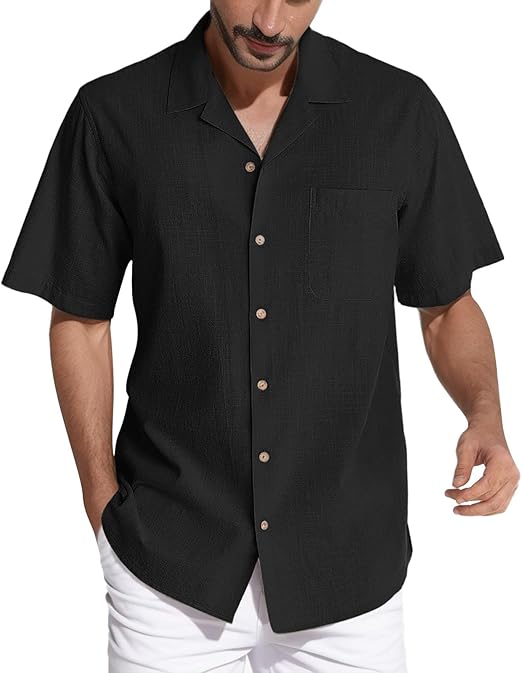 Men's Black Linen Short Sleeve Solid Color Shirts