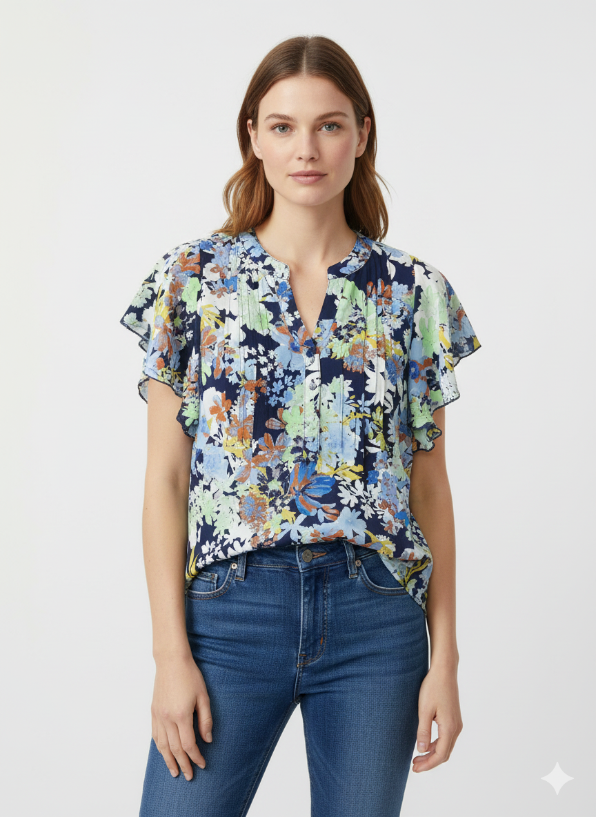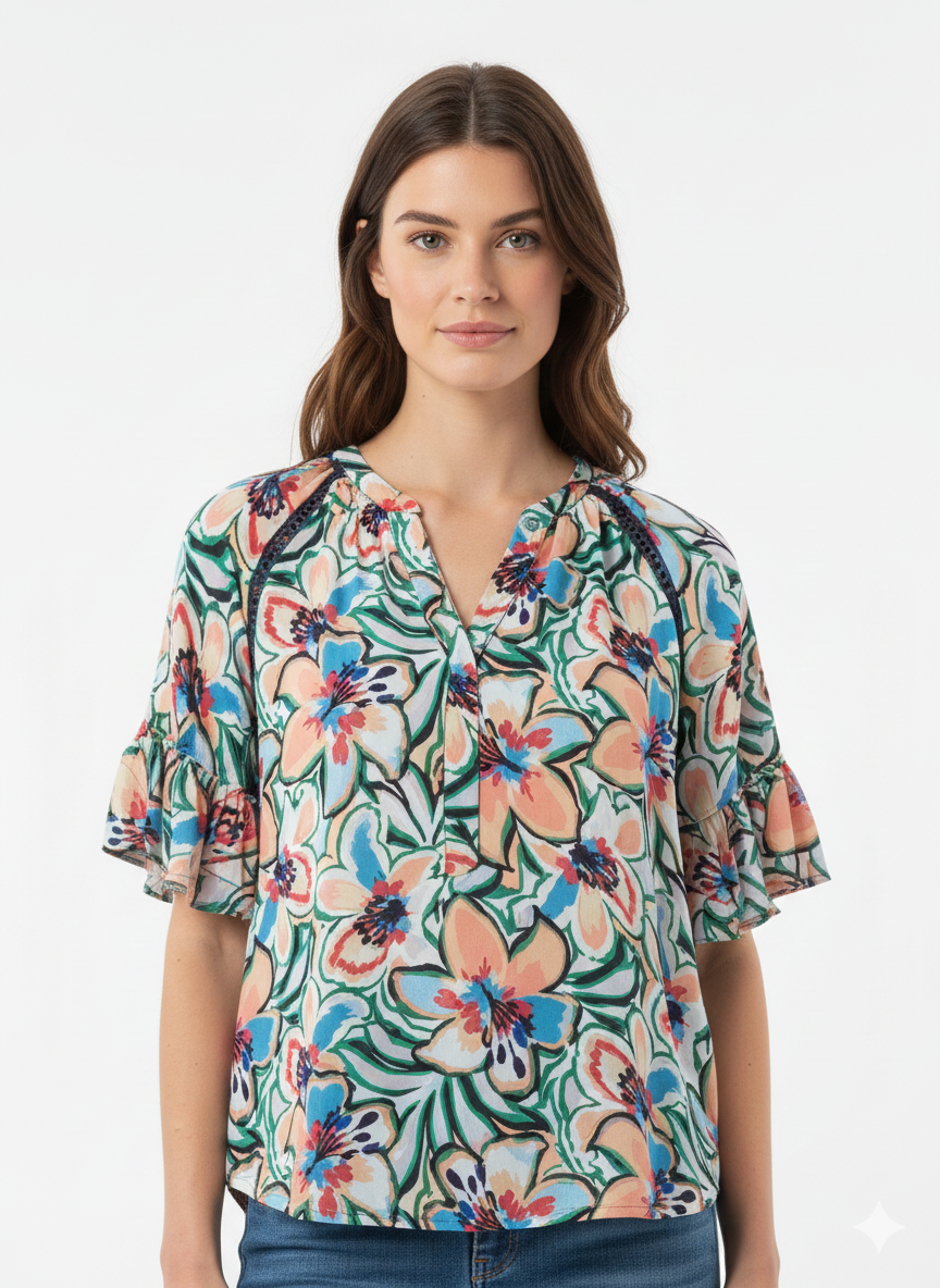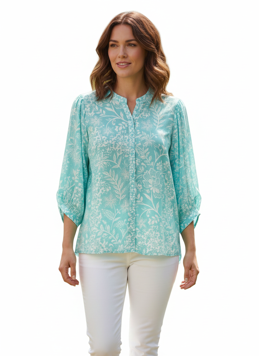 Blouse Airy Blue/Green Rose - Zac & Rachel