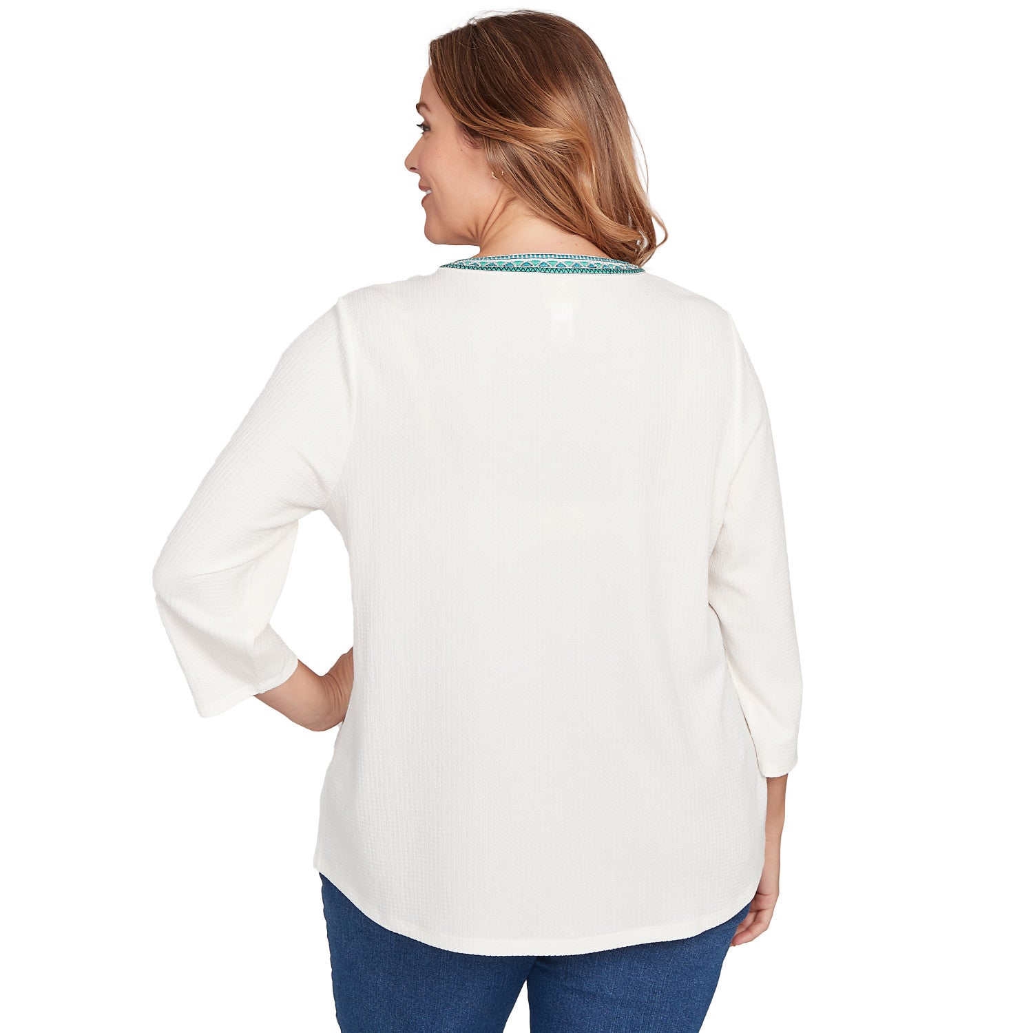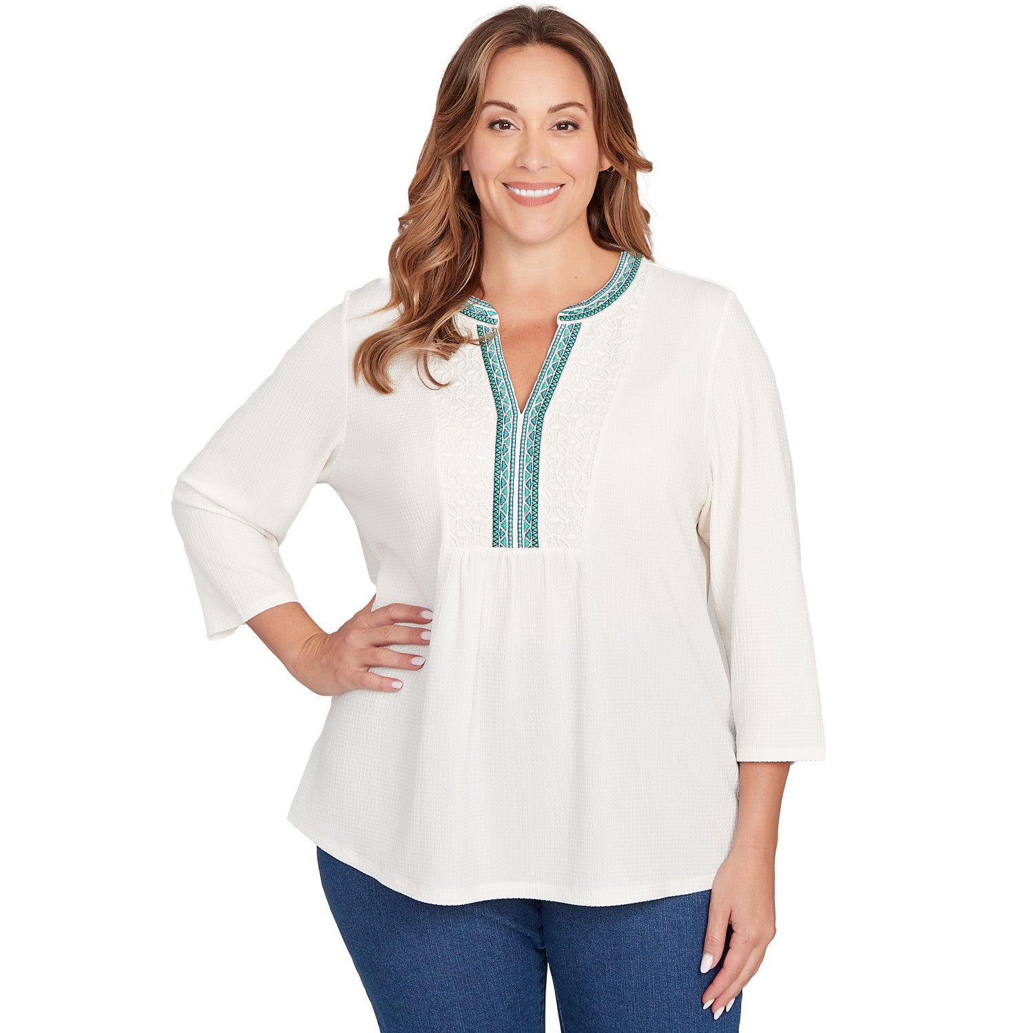 Plus Embellished Textured Split Neck Top - Ruby Rd