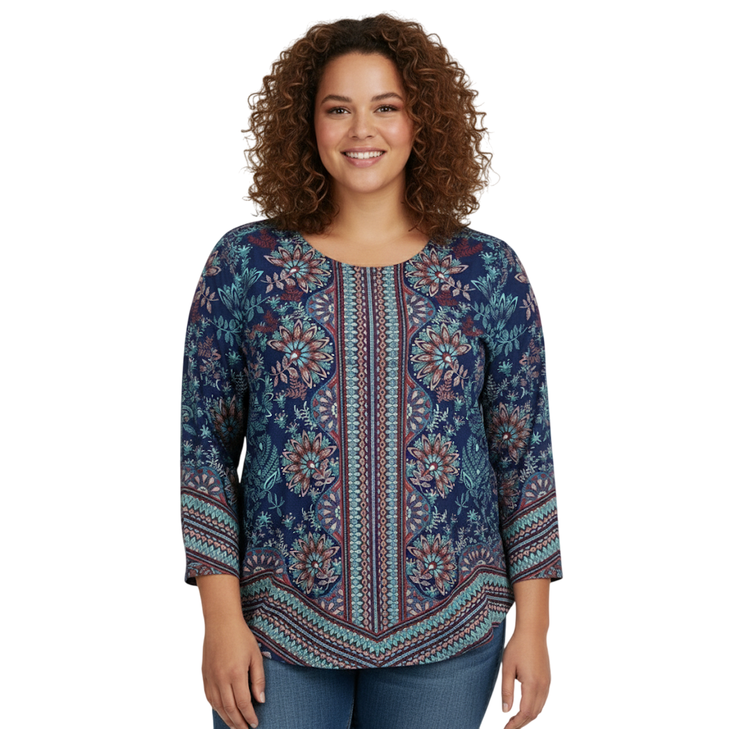 Plus Tie Dye Scroll Floral Hatchi Top Indigo - Ruby Rd
