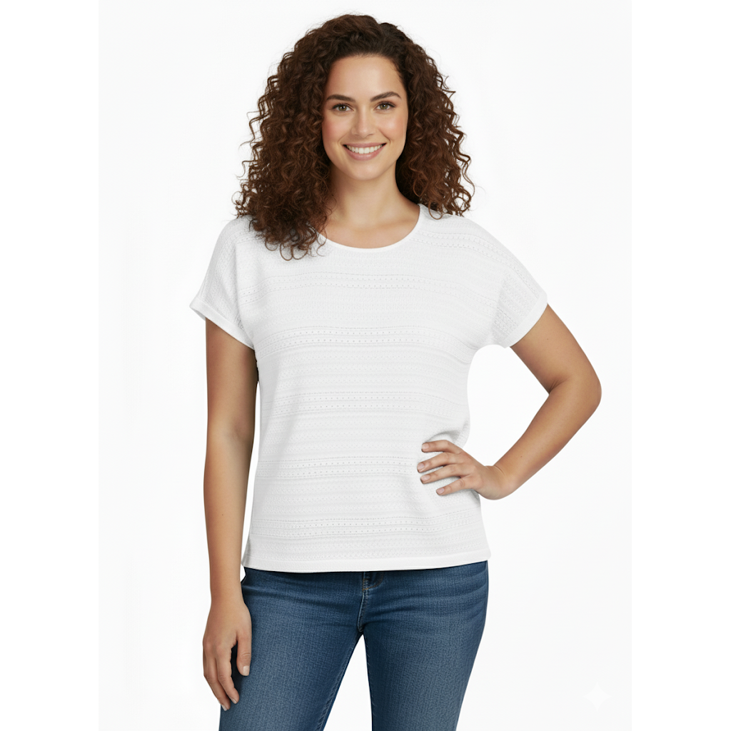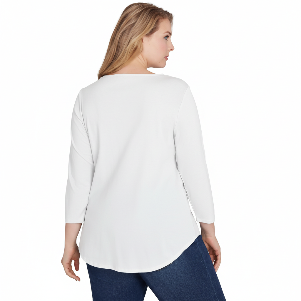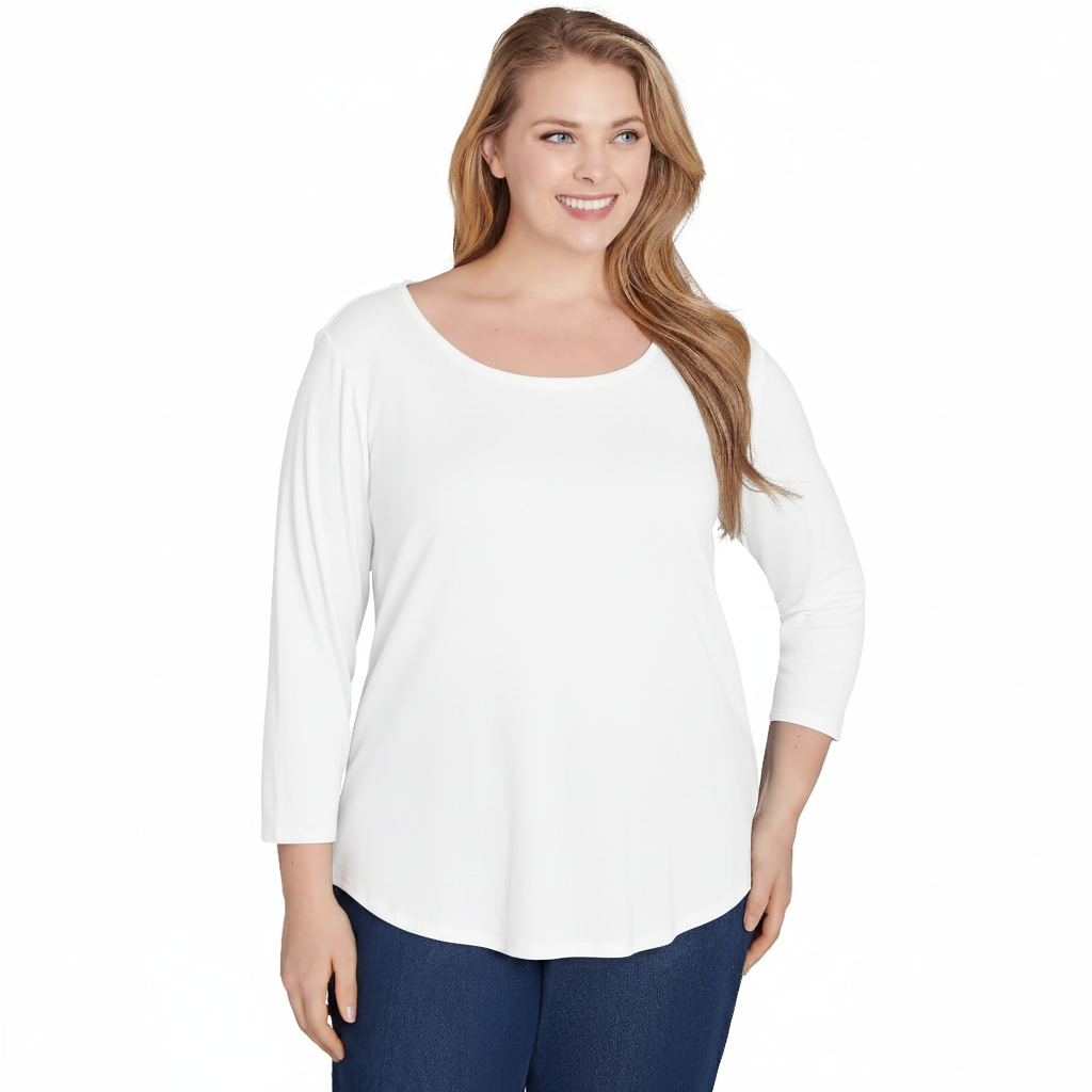Plus Scoop Neck Ribbed Solid Top White - Ruby Rd