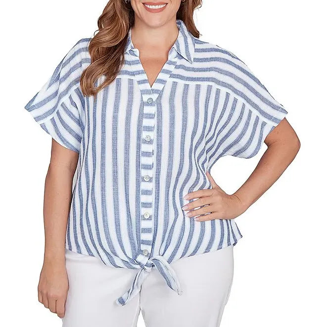 Plus Scalloped Texture Stripe Top Navy Multi - Ruby Rd