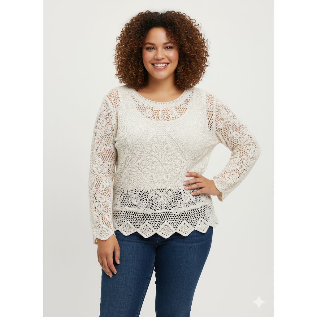 Plus Snow Washed Crochet Hem Collared Tee - Ruby Rd