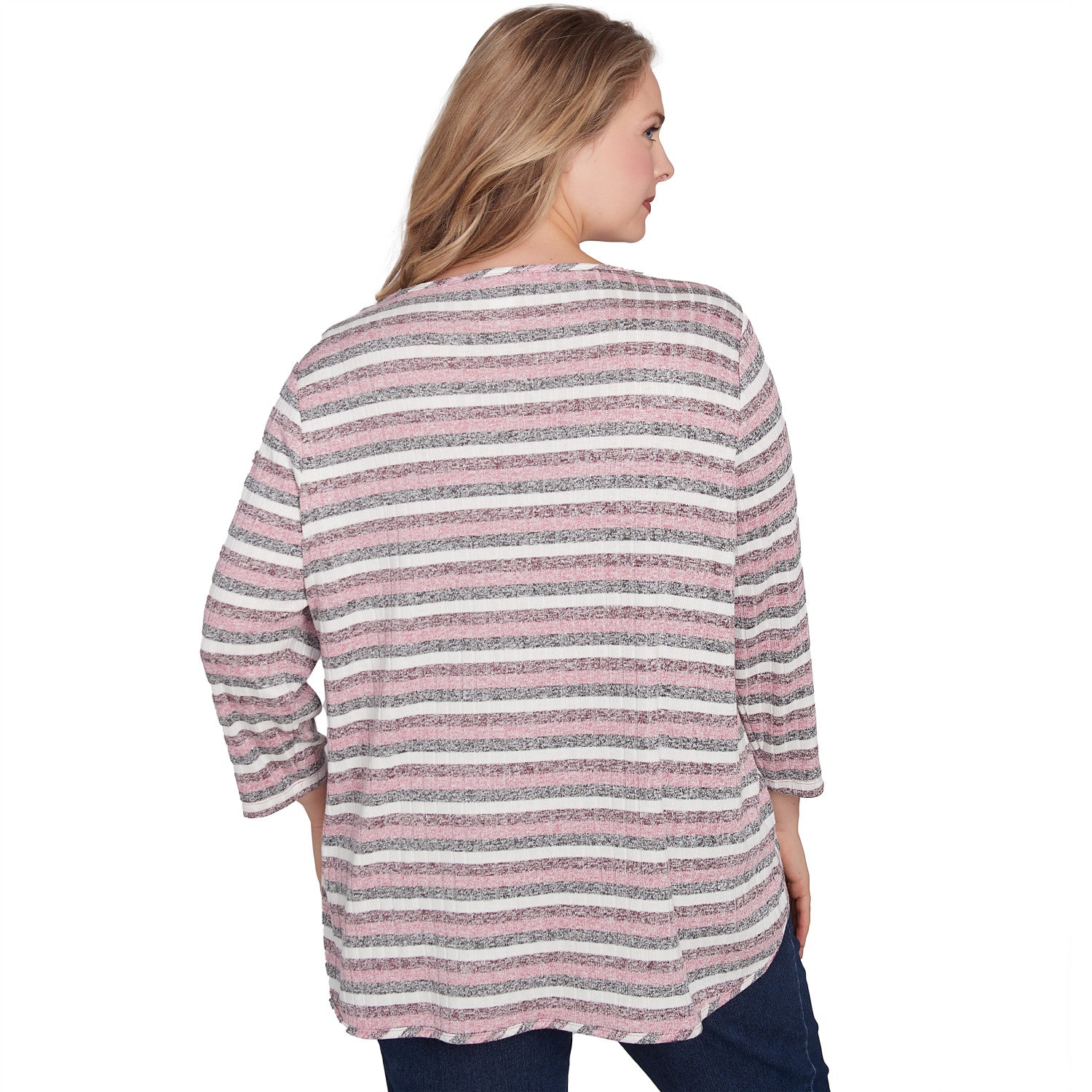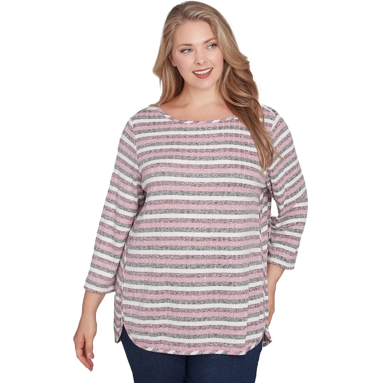 Plus Boat Neck Marled Striped Rib Knit Top Pomegranate -Ruby Rd