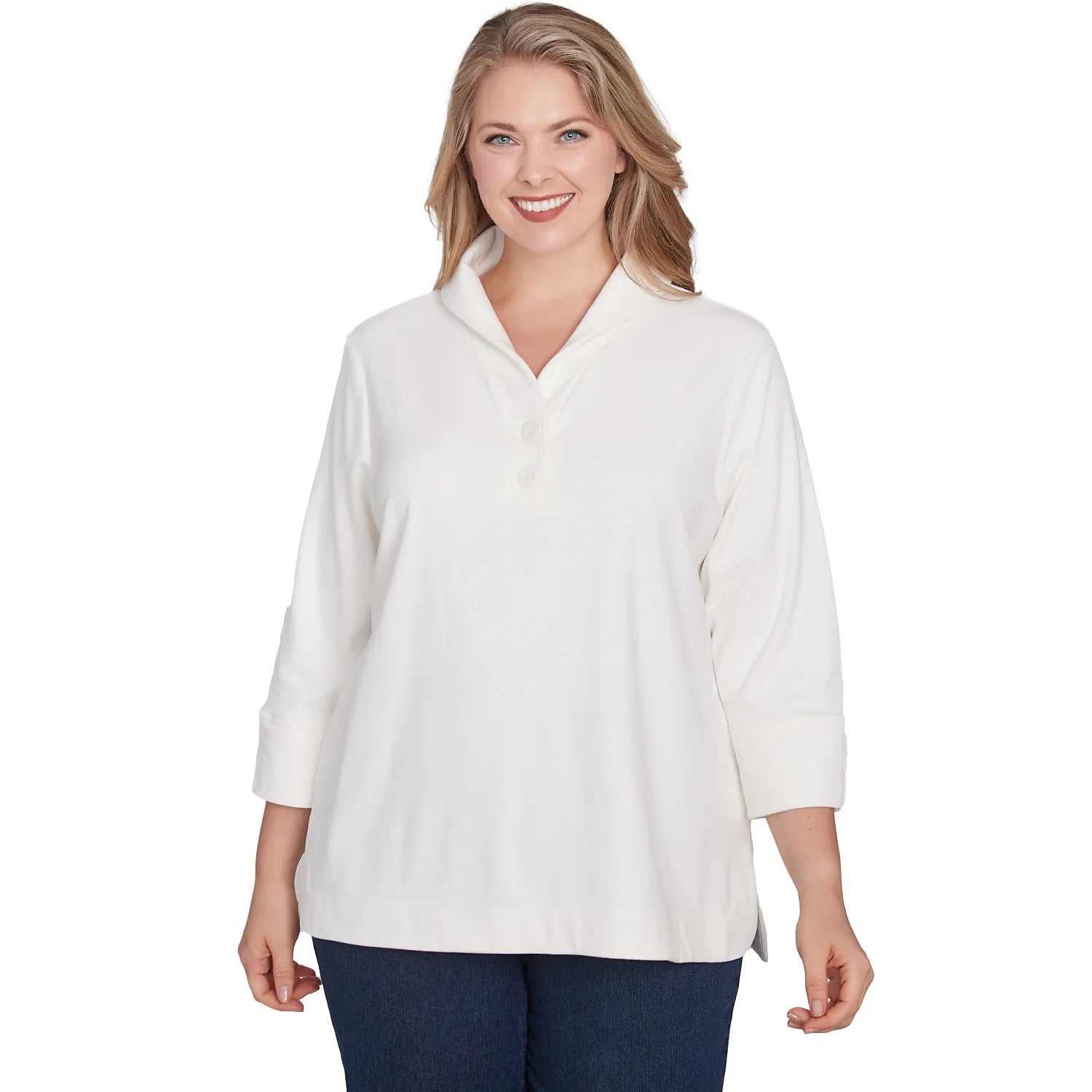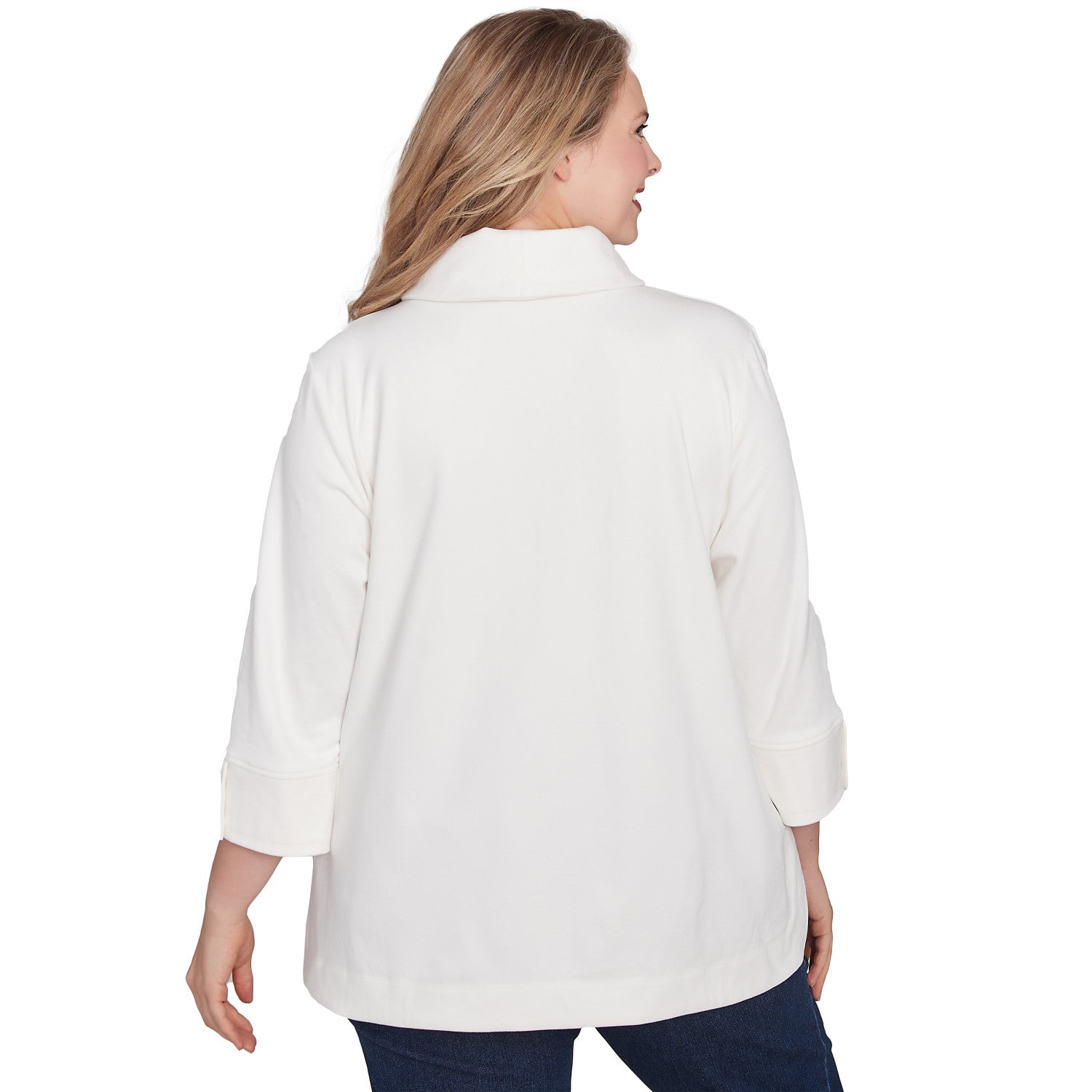 Plus Collared V-Neck Stretch Rib Knit Top Ivory -Ruby Rd