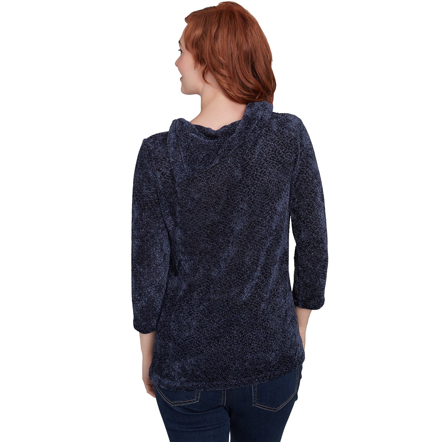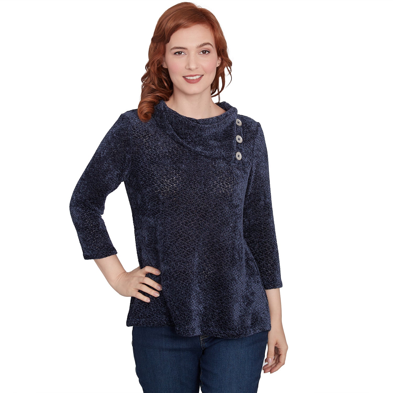 Split Cowl Neck Chenille Shine Knit Top Navy - Ruby Rd