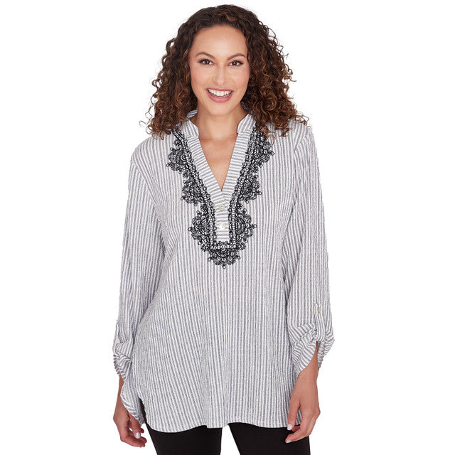 Embroidered Striped Top Blue Moon - Ruby Rd