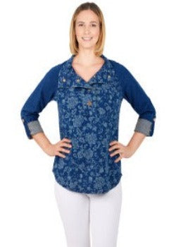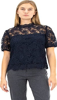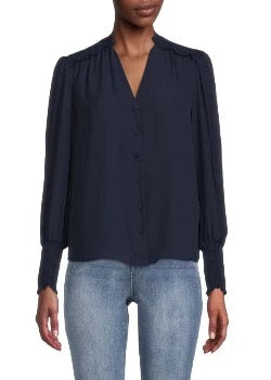 Blouse Woven Top Cuff Navy - Nanette Lepore