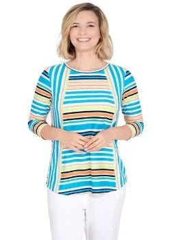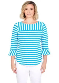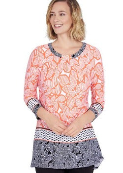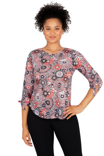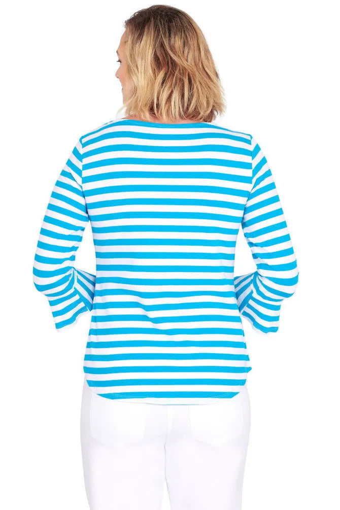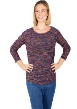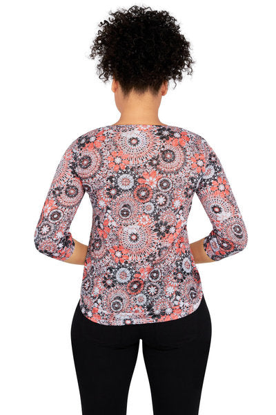 BLOUSE BLACK WHITE 3/4 SLEEVE BALLET NECK - RUBY RD