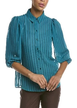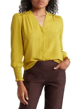 Blouse Woven Top Cuff Green - Nanette Lepore