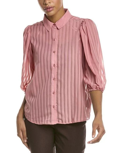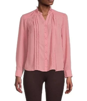Blouse Woven Top Pintuck Rosewater Pink - Nanette Lepore