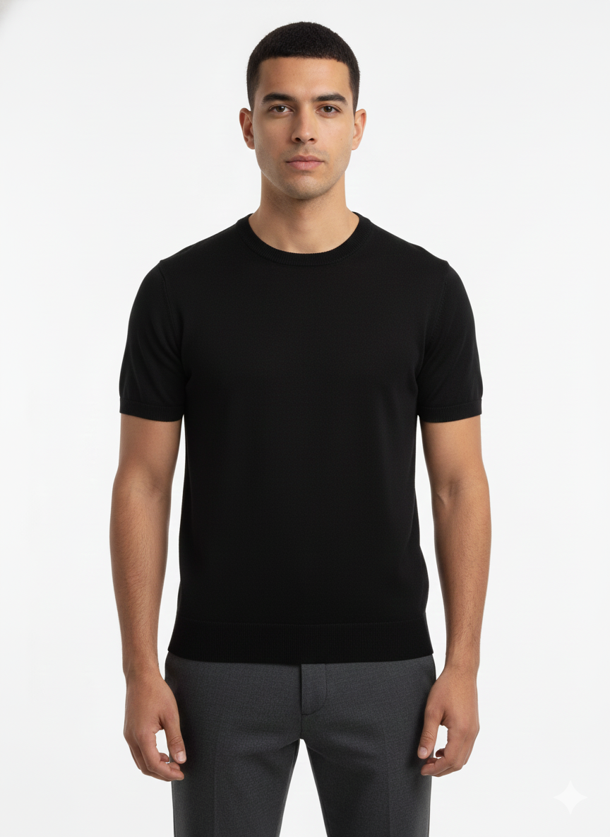 Short-sleeved knitted T-shirt Black - Luigi Baretta