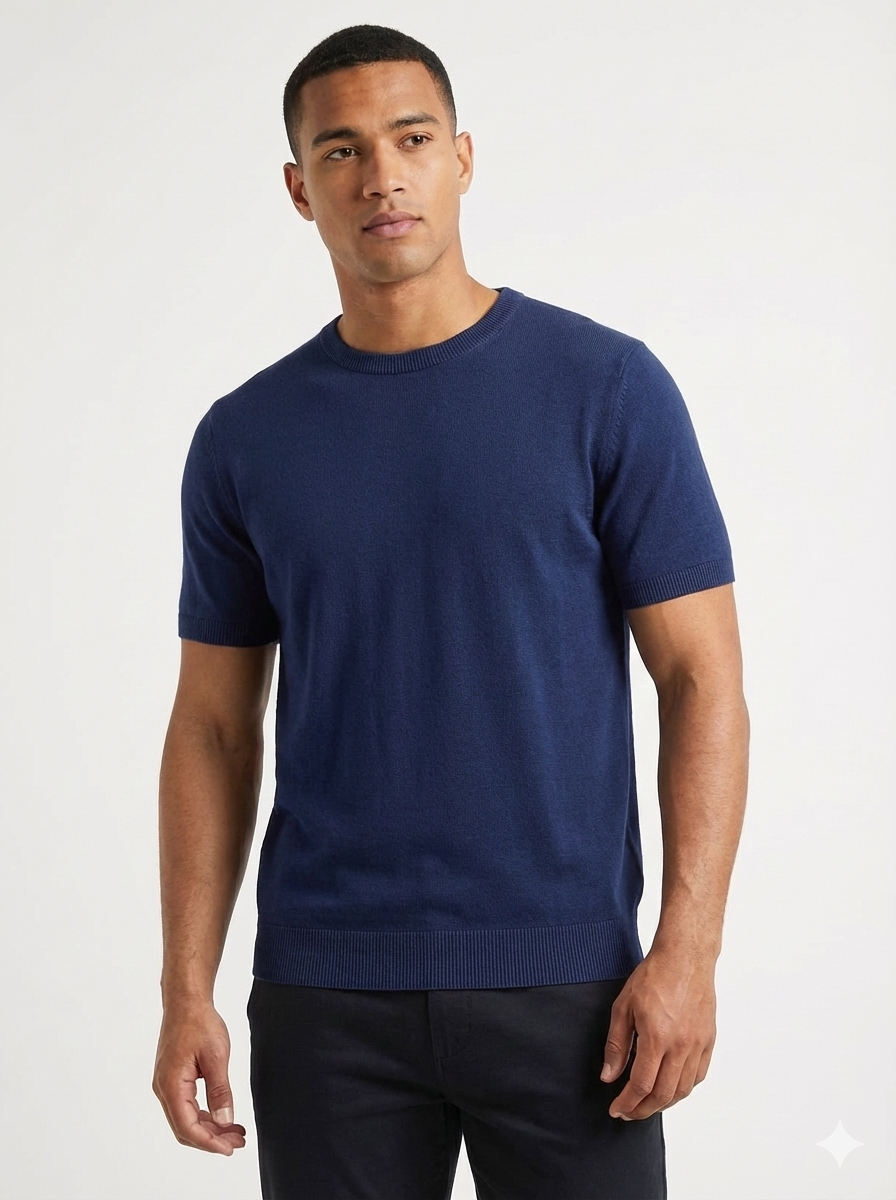 Short-sleeved knitted T-shirt Navy- Luigi Baretta