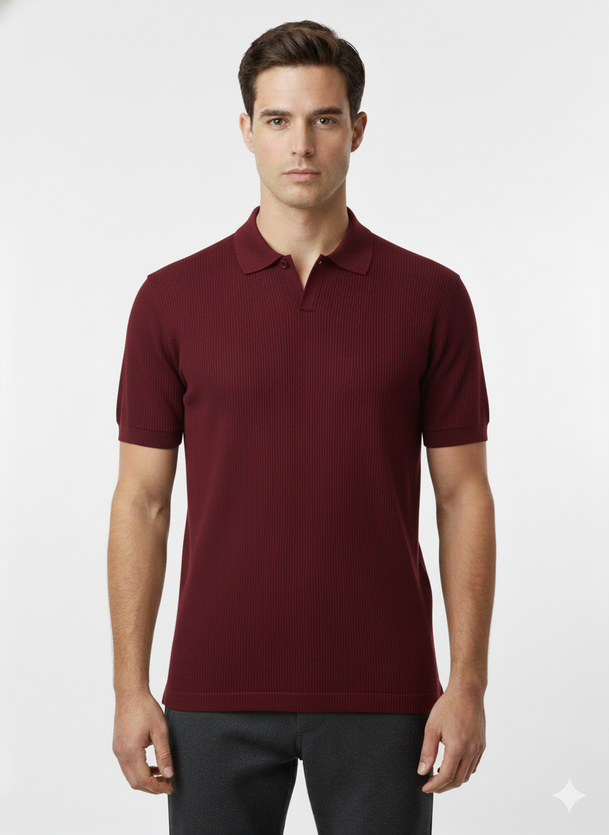 Polo Tejido V-Neck Wine Red - Luigi Baretta