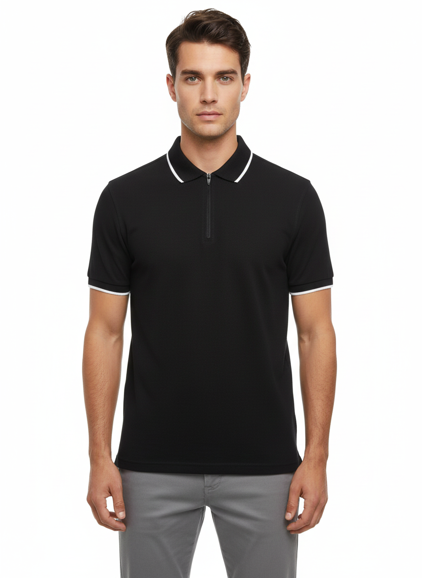Polo Pique Zipper Black - Luigi Baretta