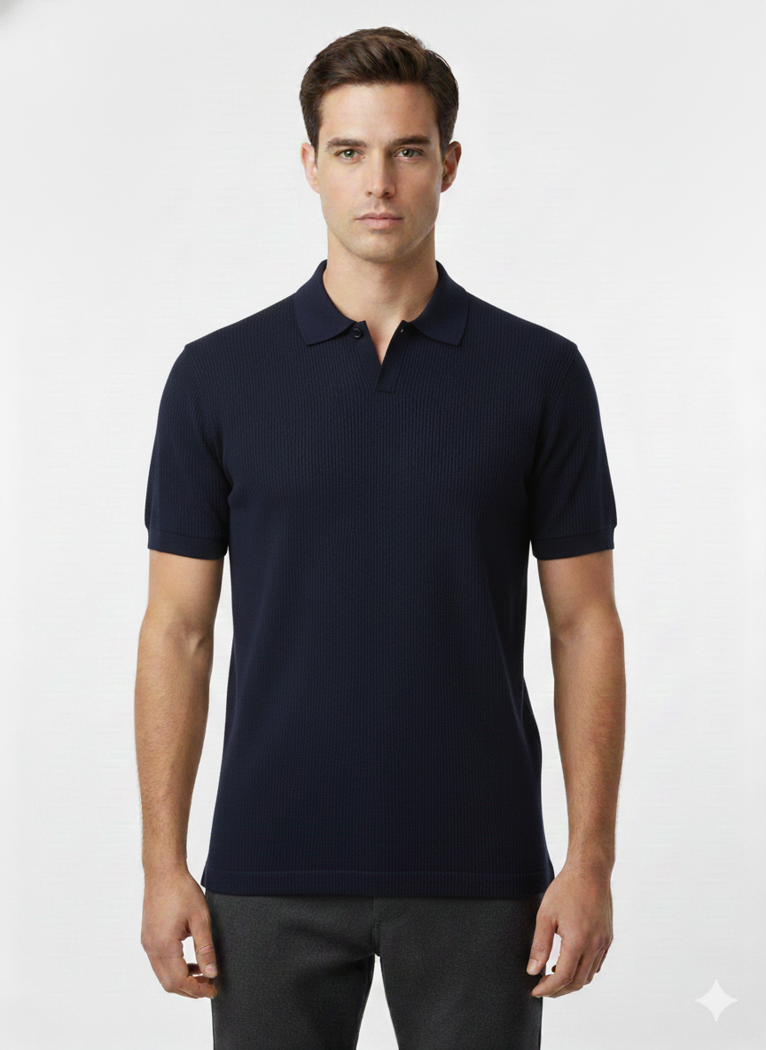 Polo Tejido V-Neck Navy - Luigi Baretta