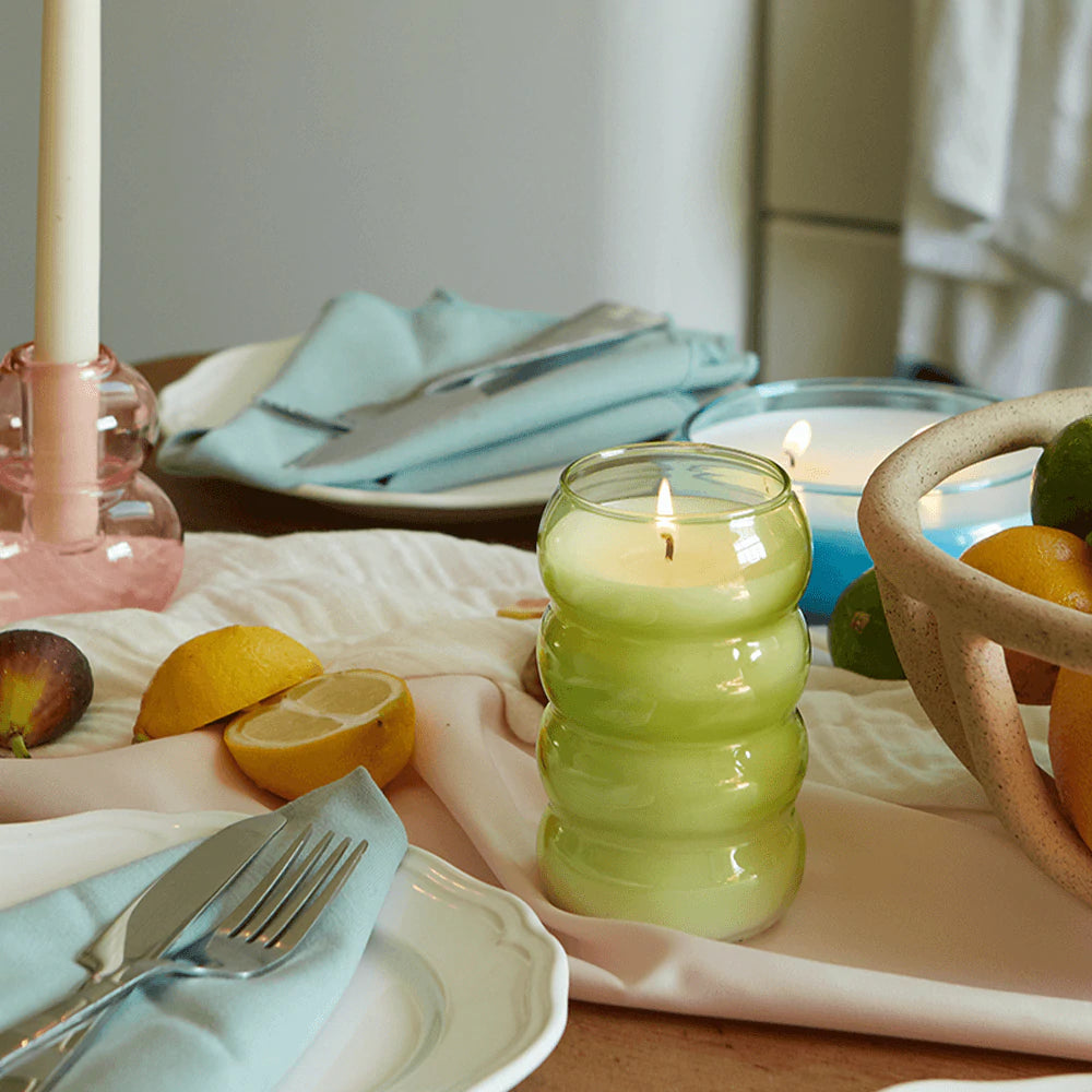 REALM 12 OZ GREEN BUBBLE RIBBED GLASS BAMBOO
