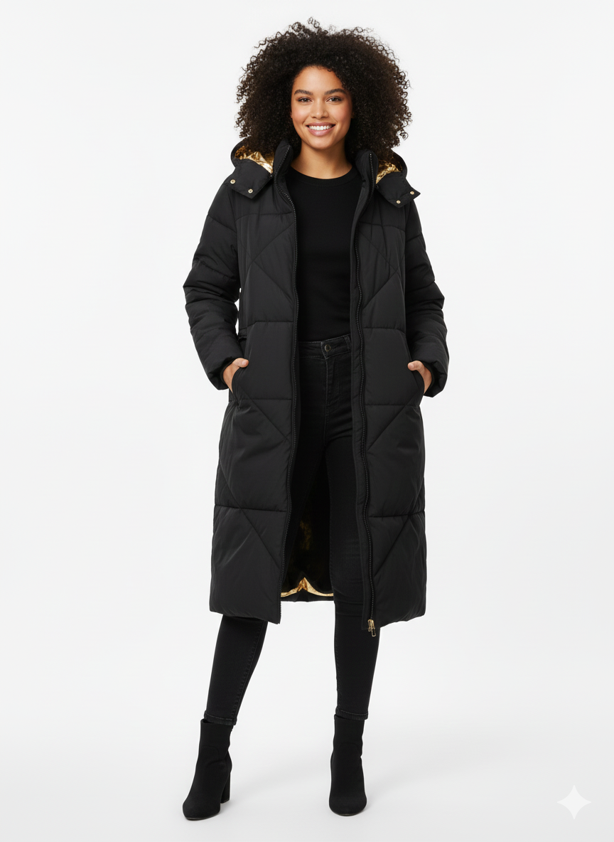 Plus Mechanical Stretch Long Coat Black