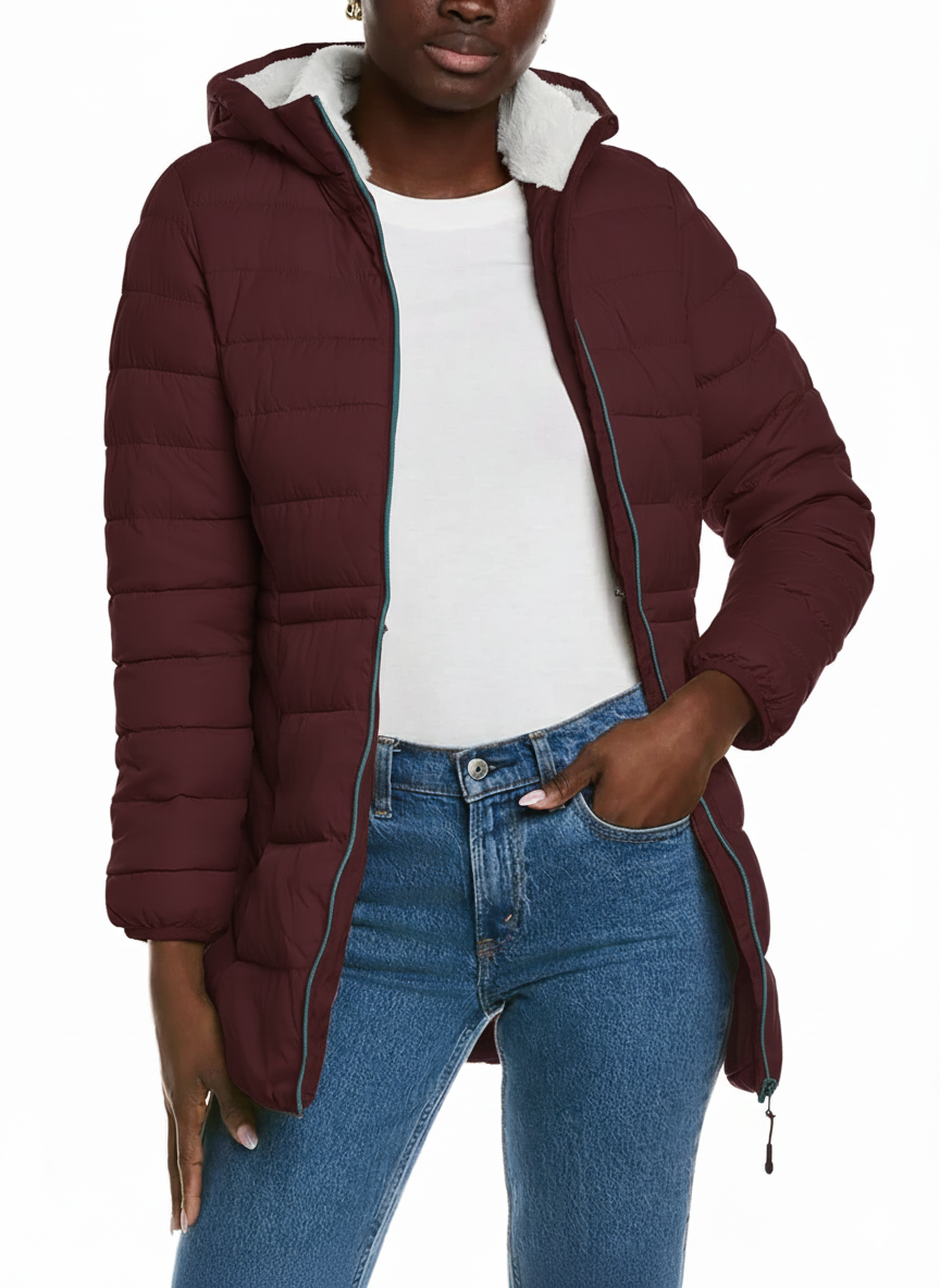 Puffer with Rabbit Fur Collar Oxblood