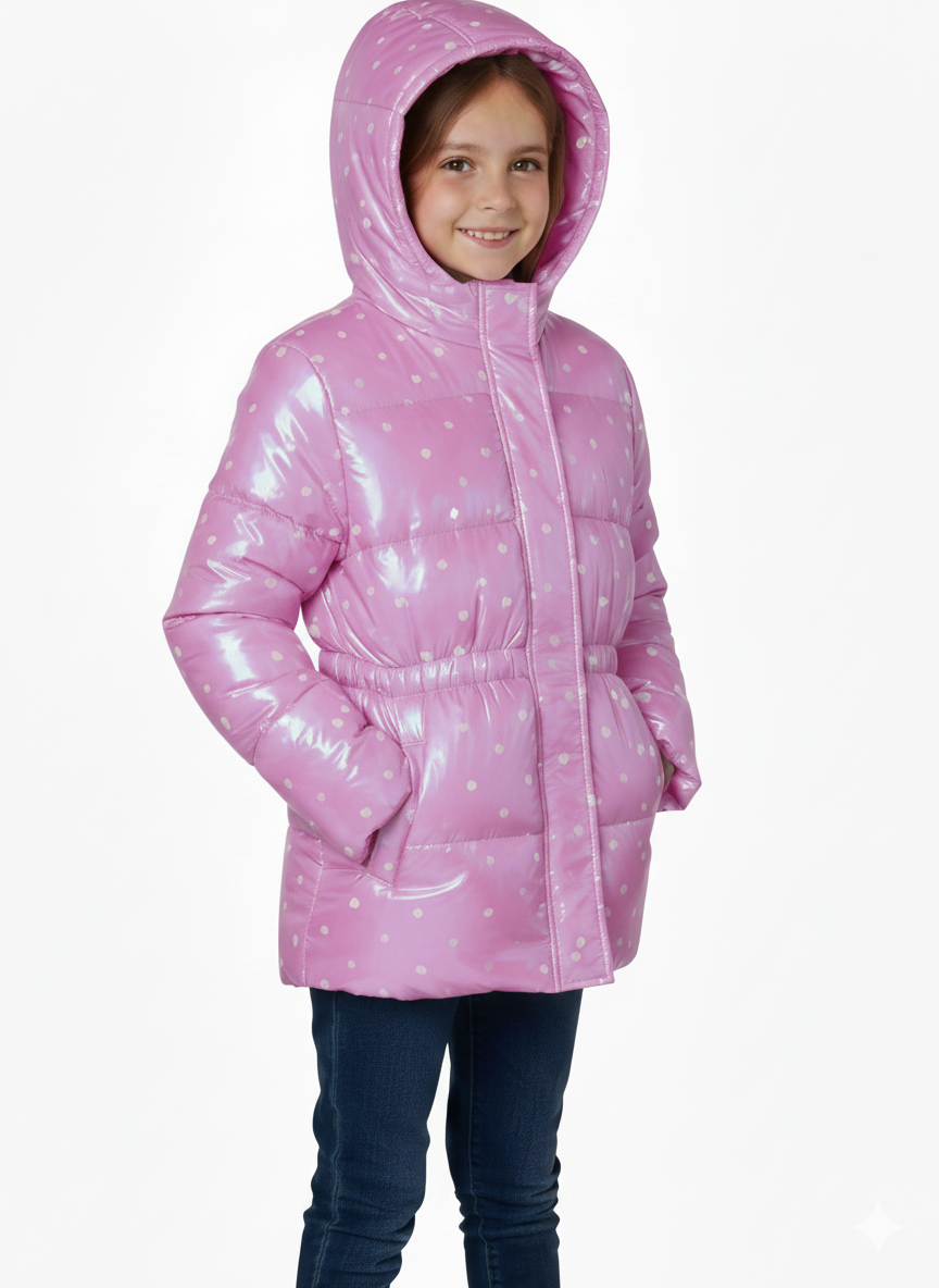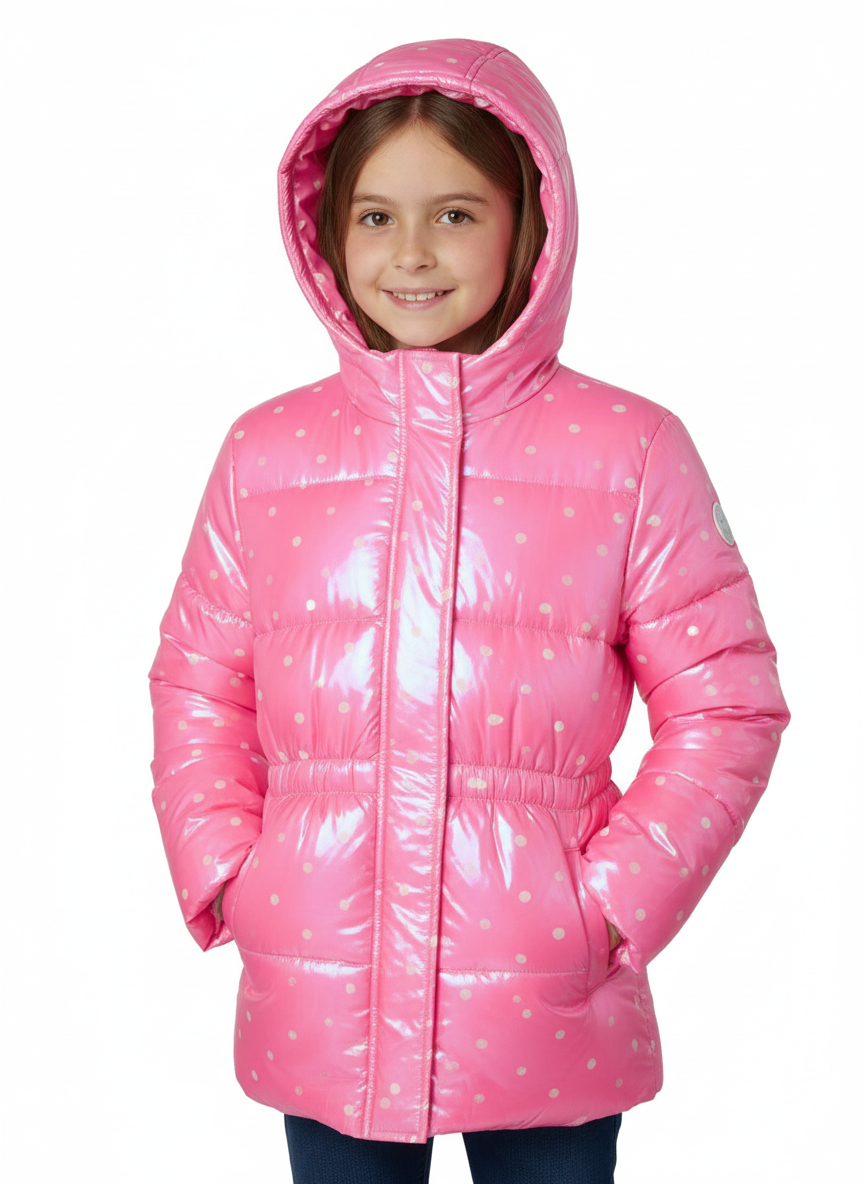 Dot Print Puffer Hot Pink