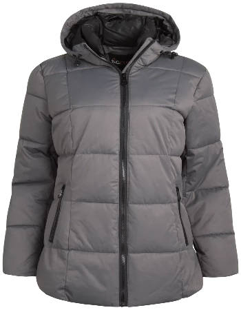 Chevron Quilted Maxi Coat with Faux Fur Hood Mid Grey