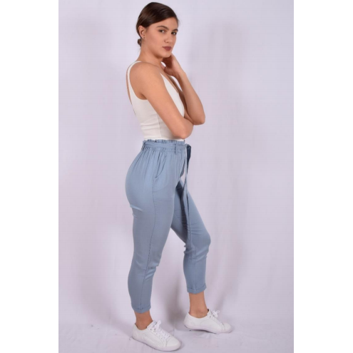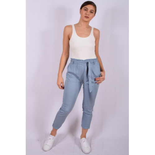 RAYON TWILL CUFFED ANKLE SKINNY PAPERBAG PANT