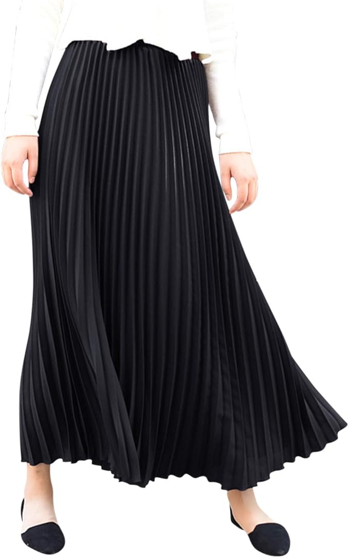 Ladies Solid 36" Pleated Skirt Electric Black - Liz & Lilli