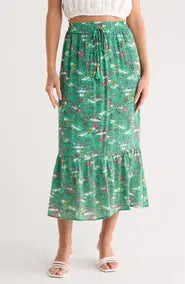 Printed Flounce Midi Skirt Green - Nanette Lepore