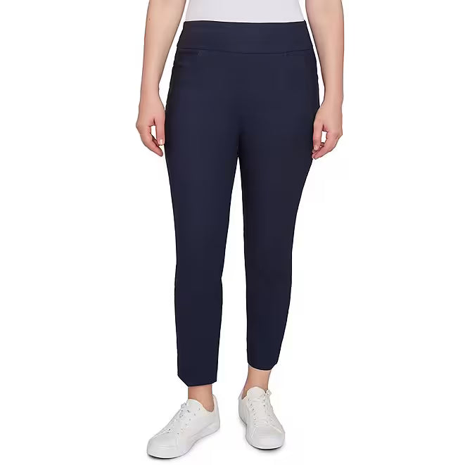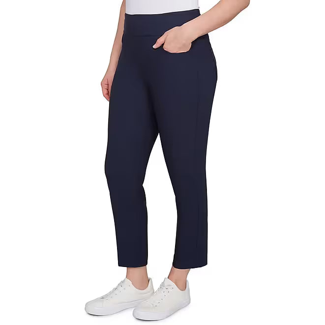 Silk Tech Straight Leg Pull-On Ankle Pants Navy -Ruby Rd