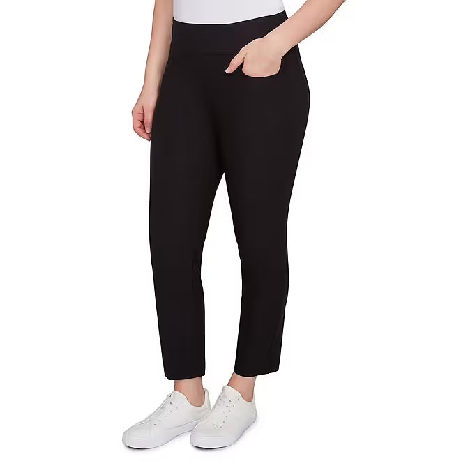 Silk Tech Straight Leg Pull-On Ankle Pants Black -Ruby Rd
