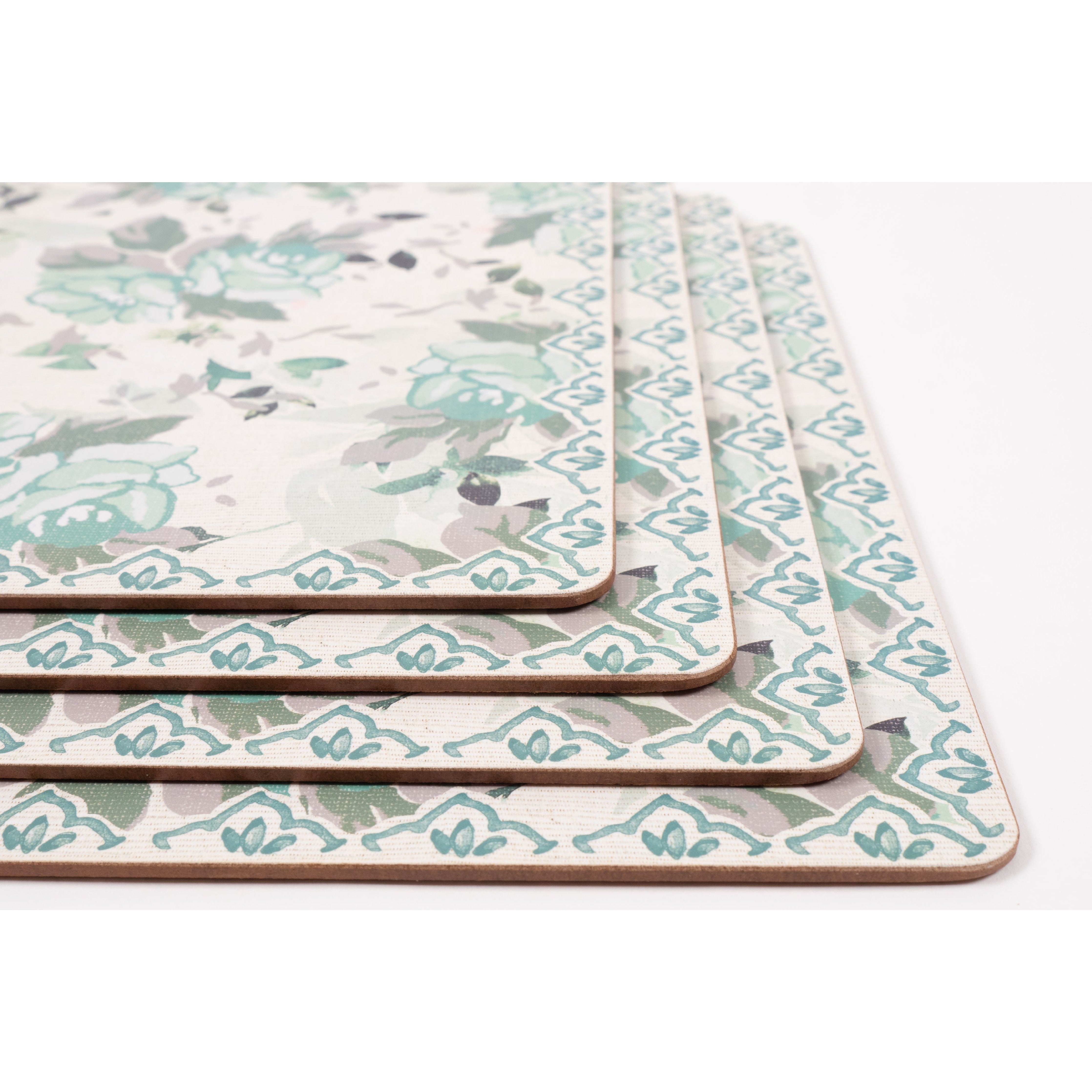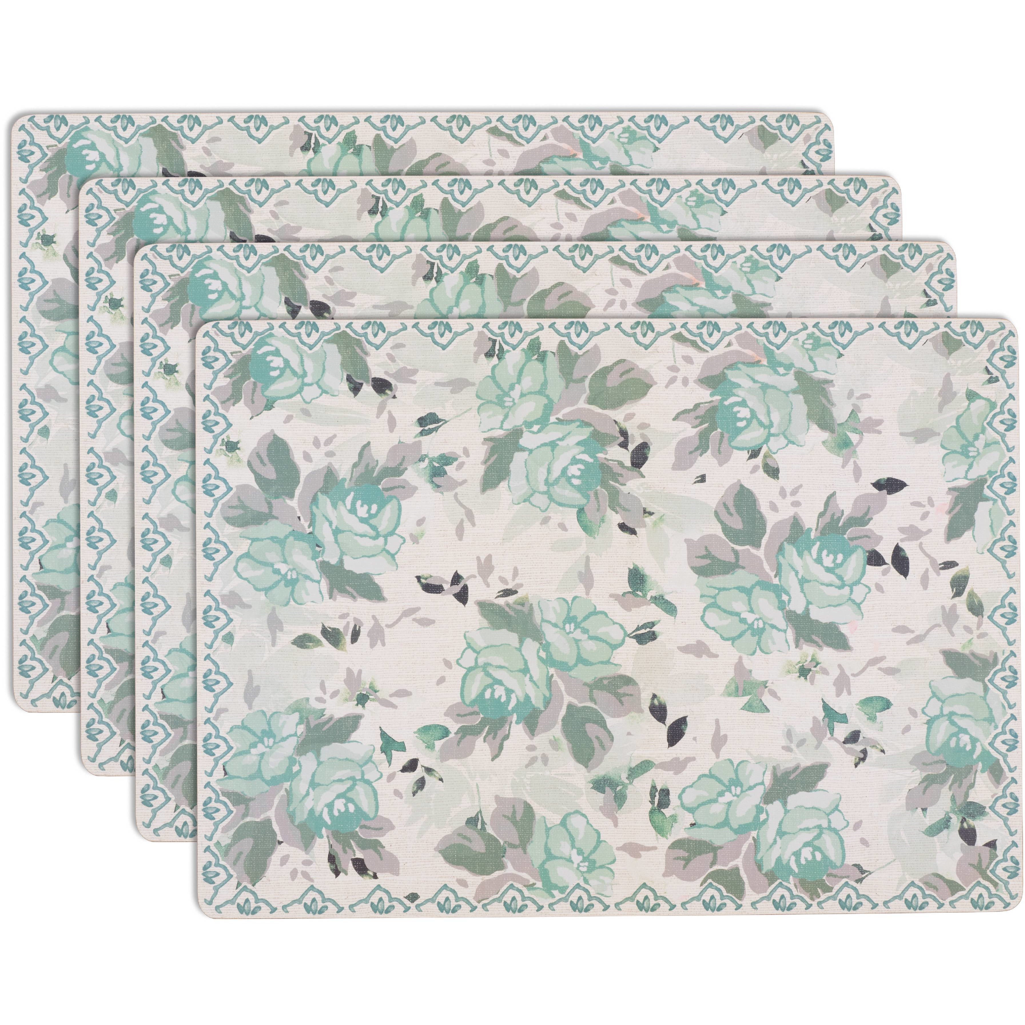 SET OF 4 EASY CARE PLACEMATS BLUE ROSES