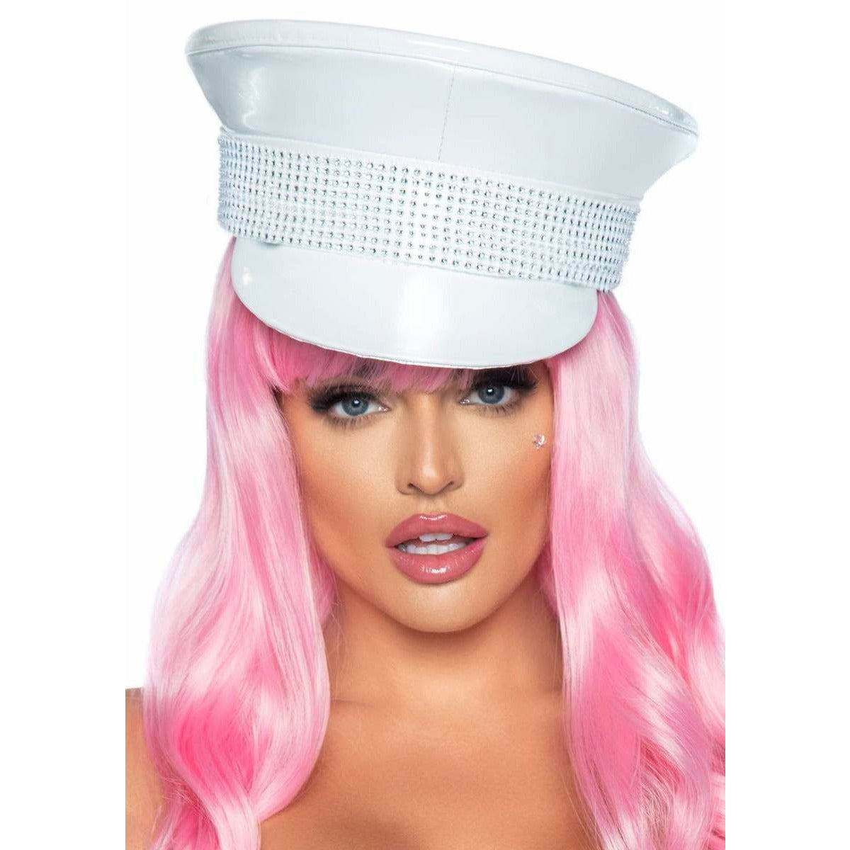 RHINESTONE TRIMMED MILITARY HA WHITE