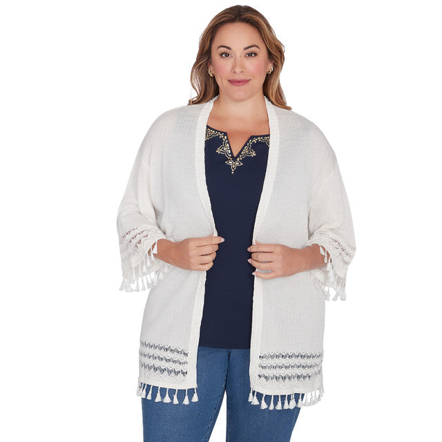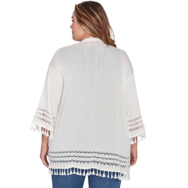 Cardigan Open Front Fringe Ivory - Ruby Rd