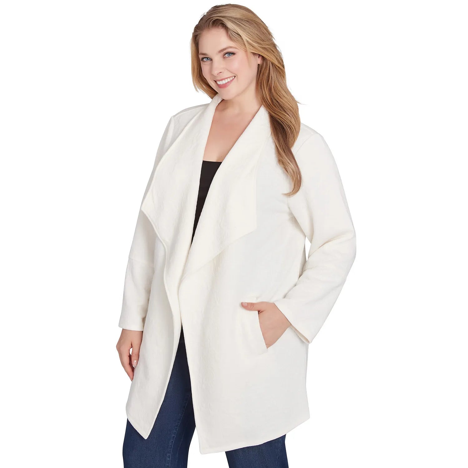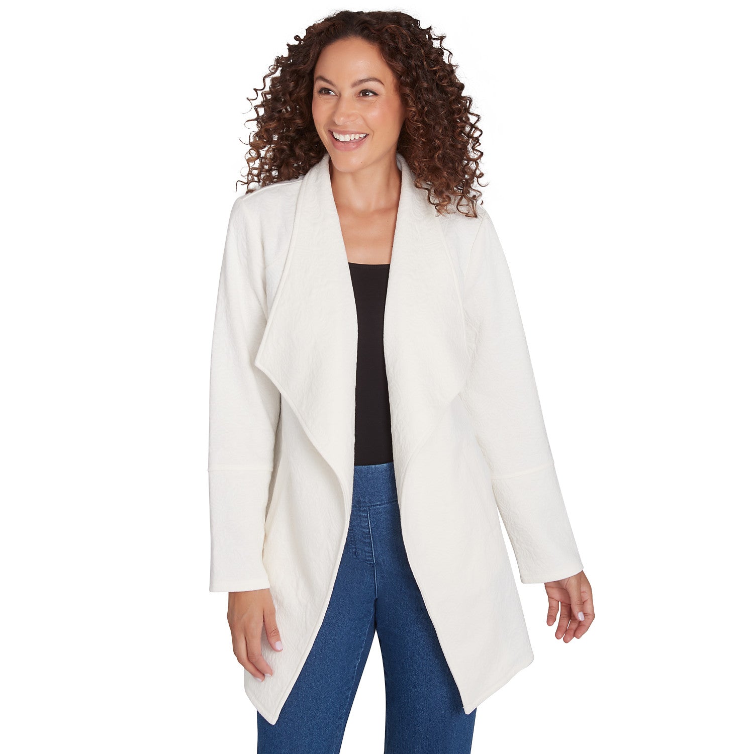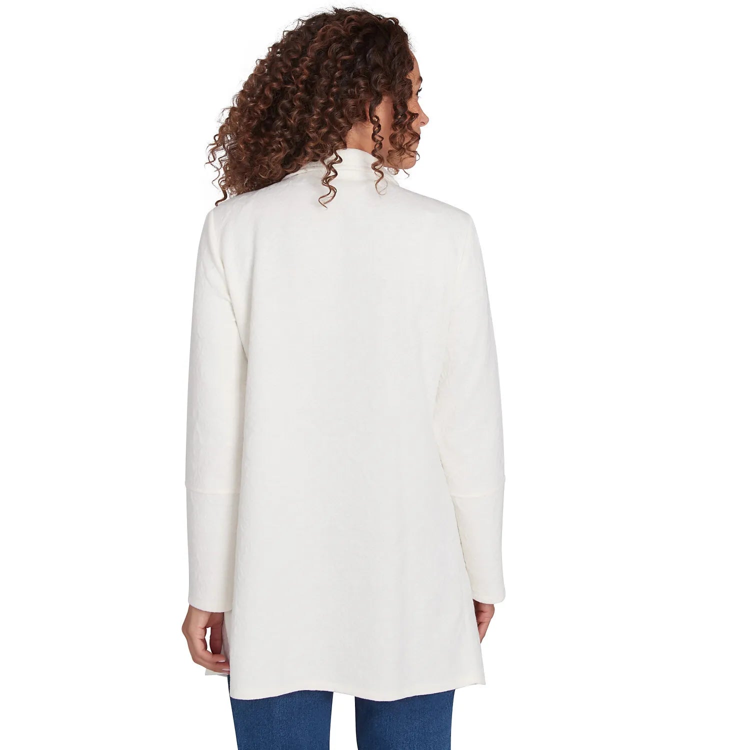 Plus Button Front Stretch Rib Knit Jacket Ivory -Ruby Rd