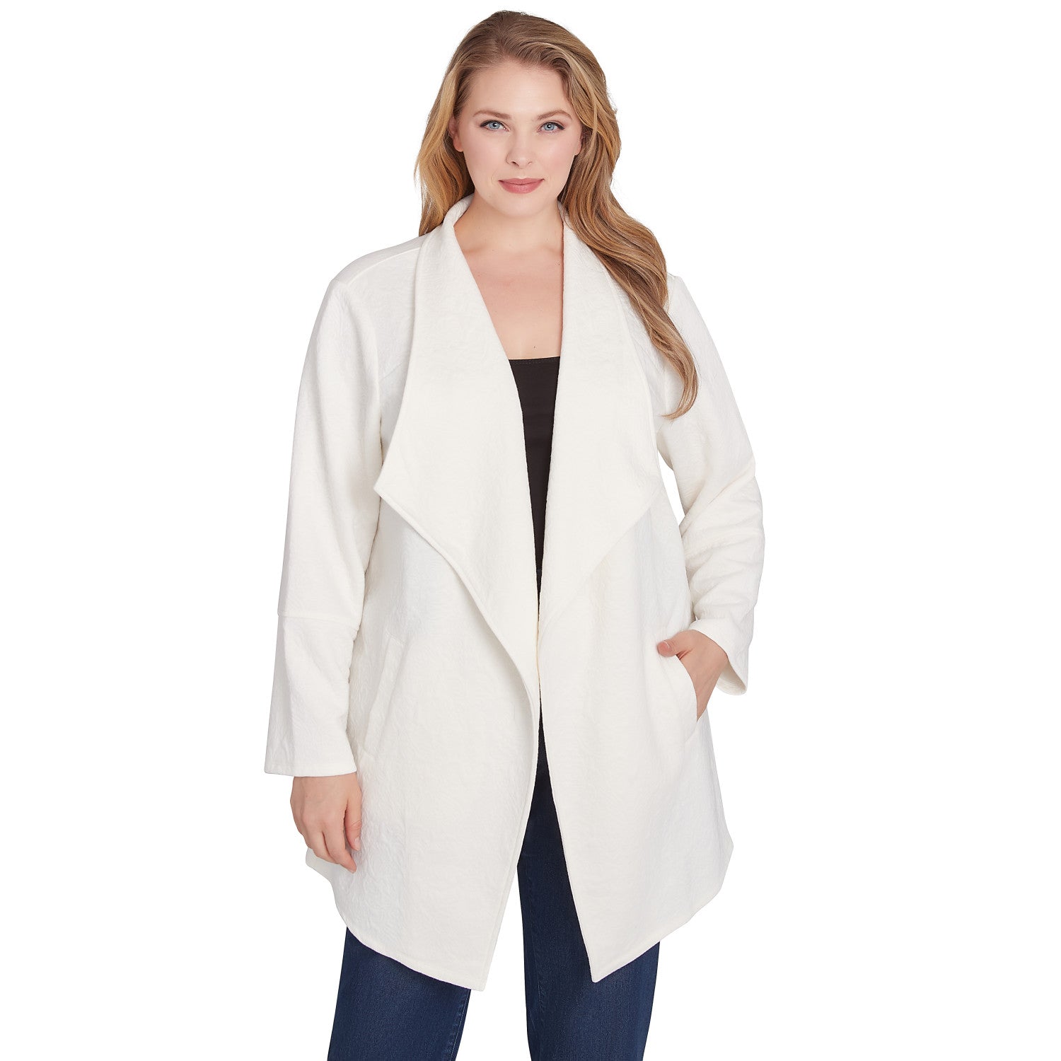 Plus Winter Scroll Quilted Knit Jacket Ivory - Ruby Rd