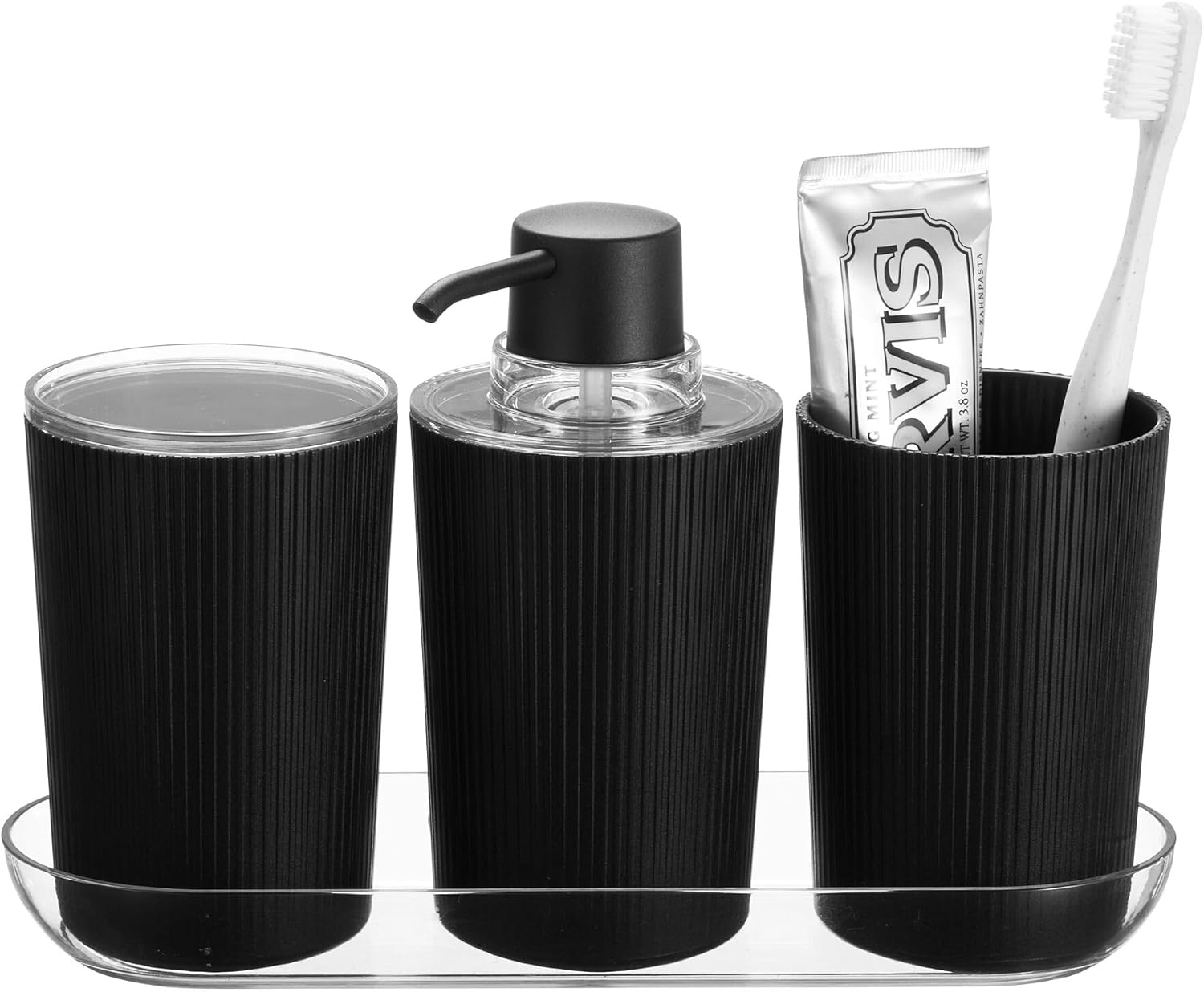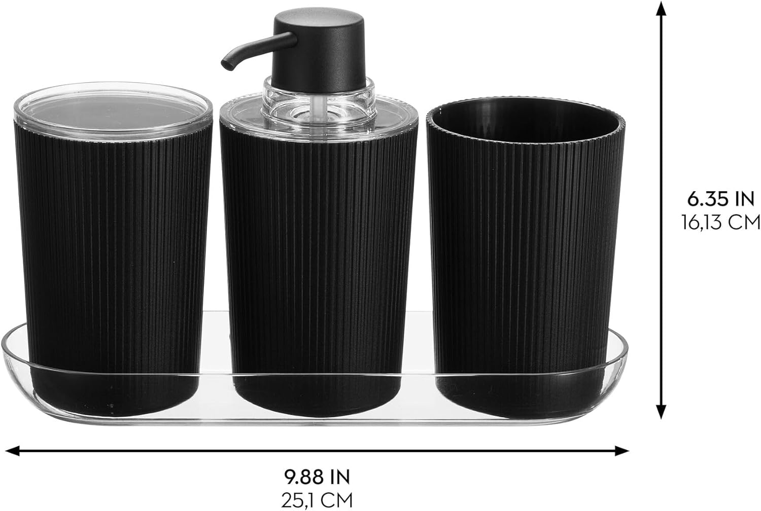 Fluted Soap Pump Set with Tray Black