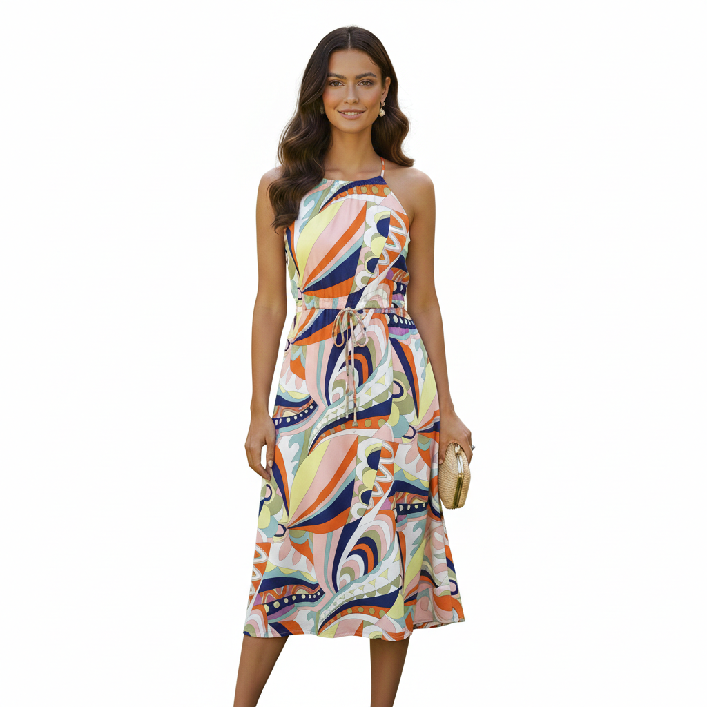 Tie Back Printed Dress Coral