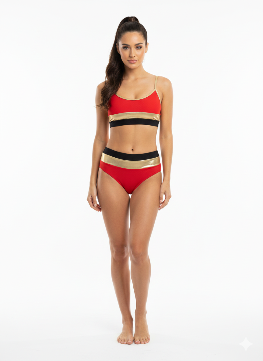 Ladies 2pc Swimsuit Red-Gold-Black - Emme Jordan