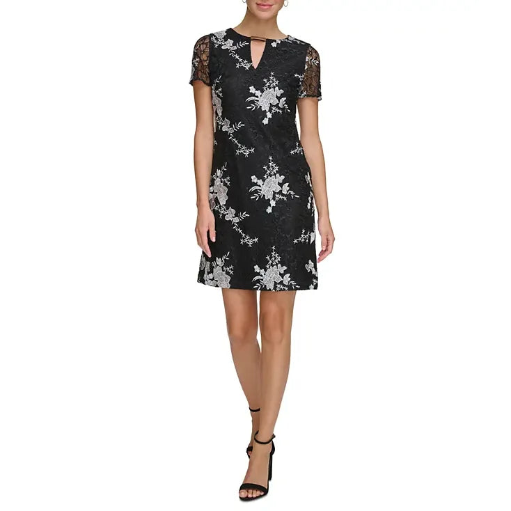 Floral Embroidered Lace Minidress Black/White - Kensie