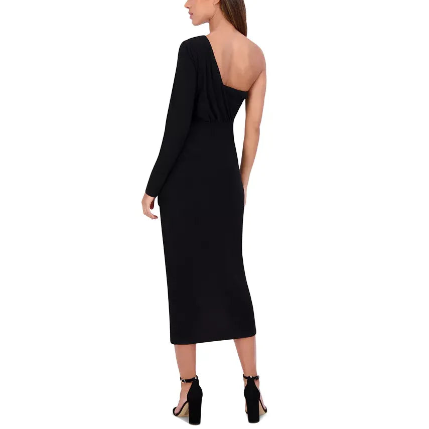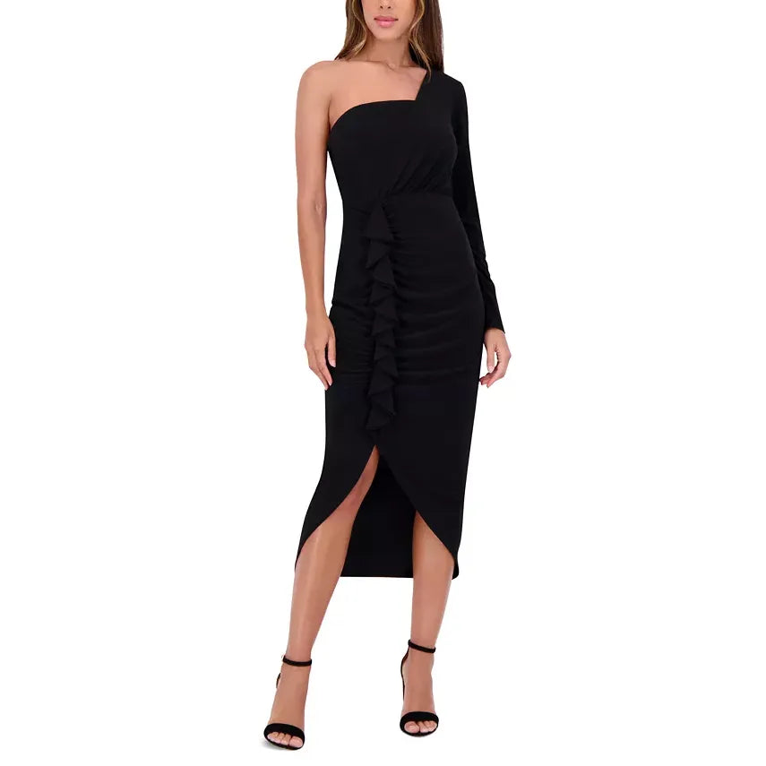 Ruffled One-Shoulder Midi Dress Black - Siena