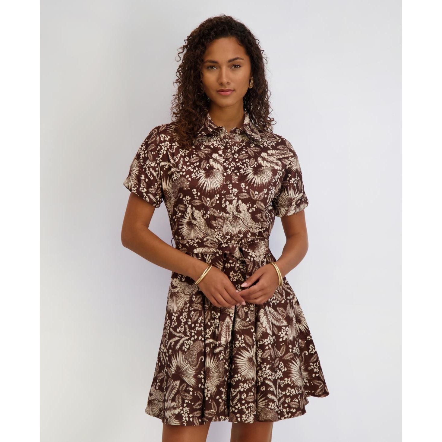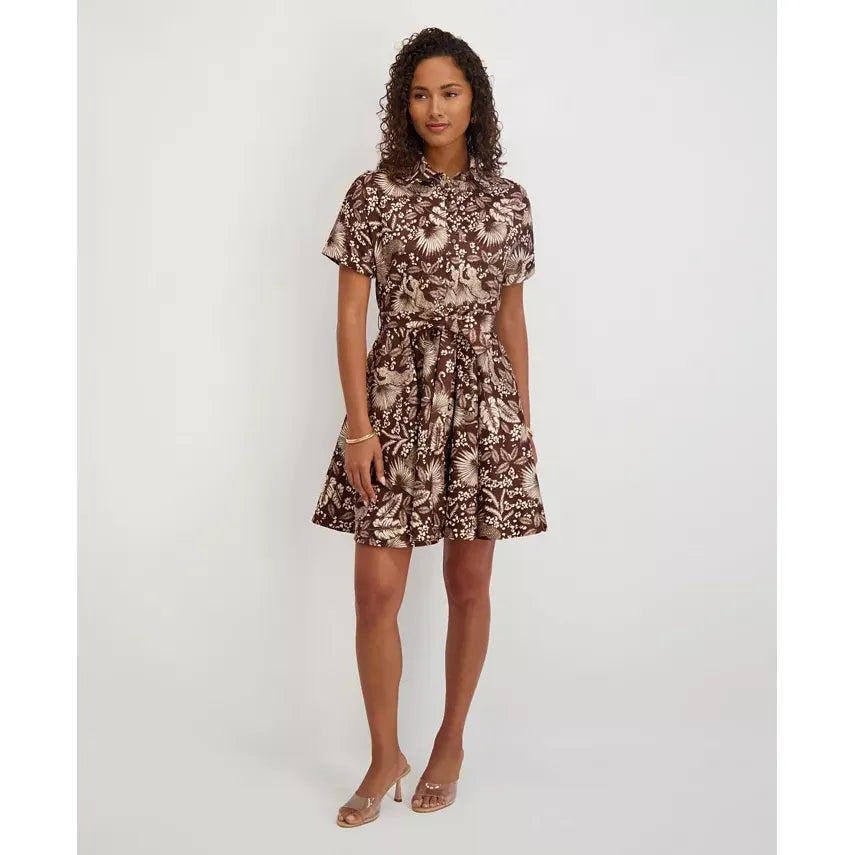 Floral Print Textured Stretch Taffeta Shirt Dress Choco Multi - Kensie