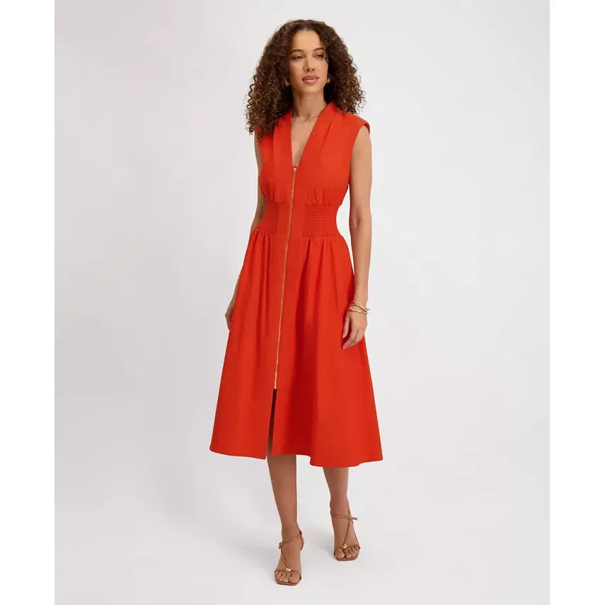 Sleeveless V-Neck Zip-Front Maxi Dress Terracotta - Kensie