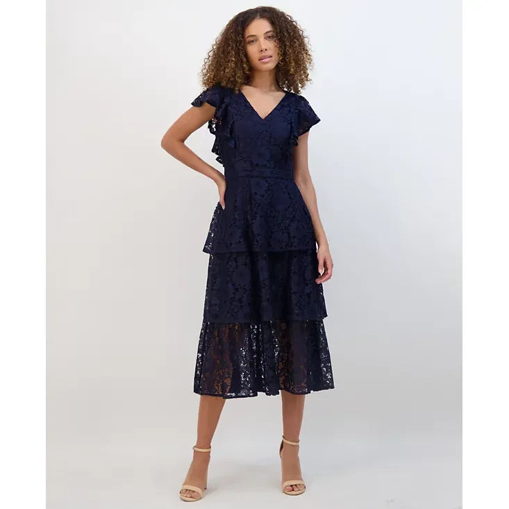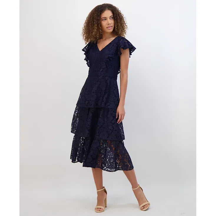 Tiered Lace Midi Dress Navy - Kensie