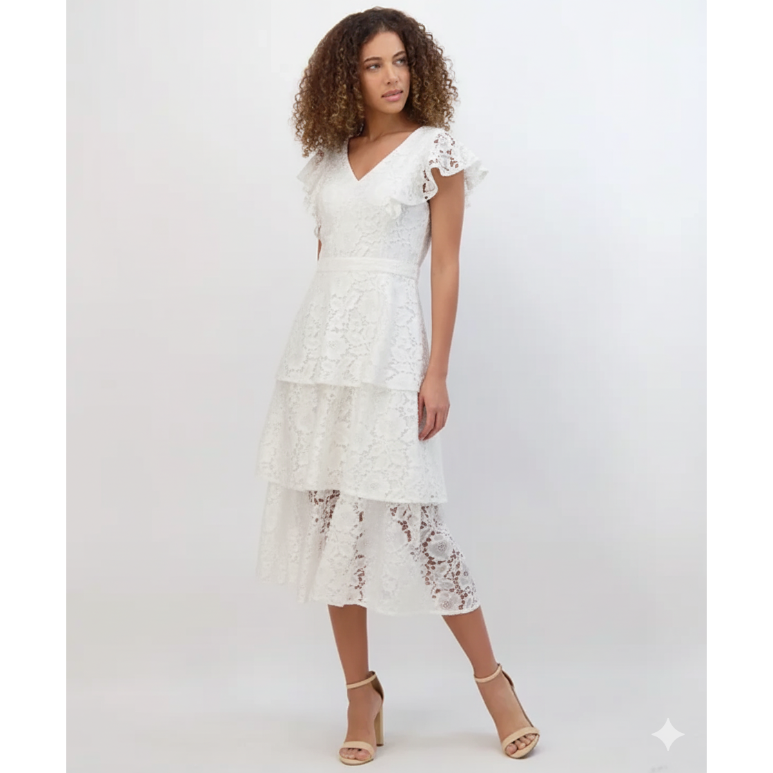Tiered Lace Midi Dress White - Kensie