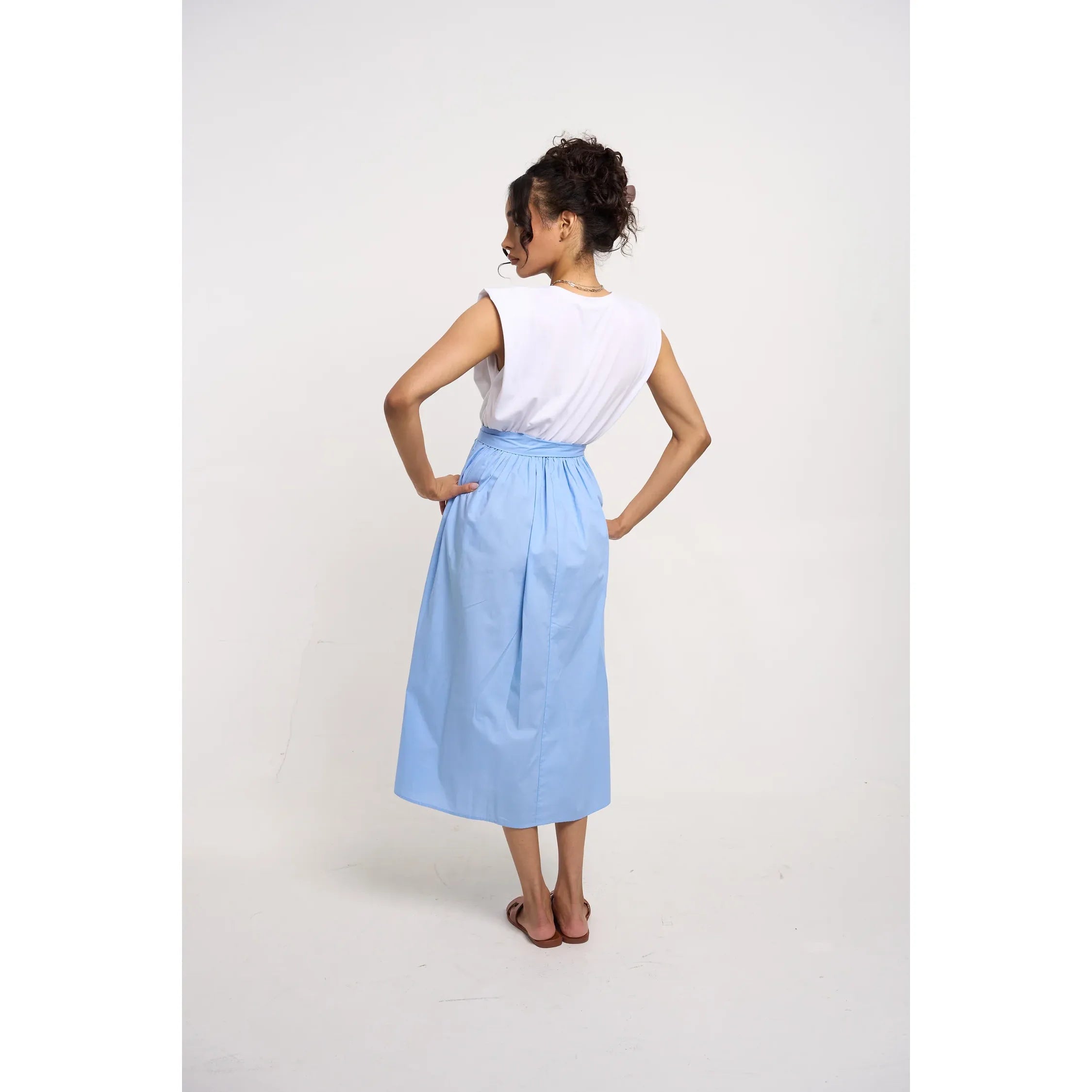 Oh Darling Poplin Midi Dress White/Cornflower Blue